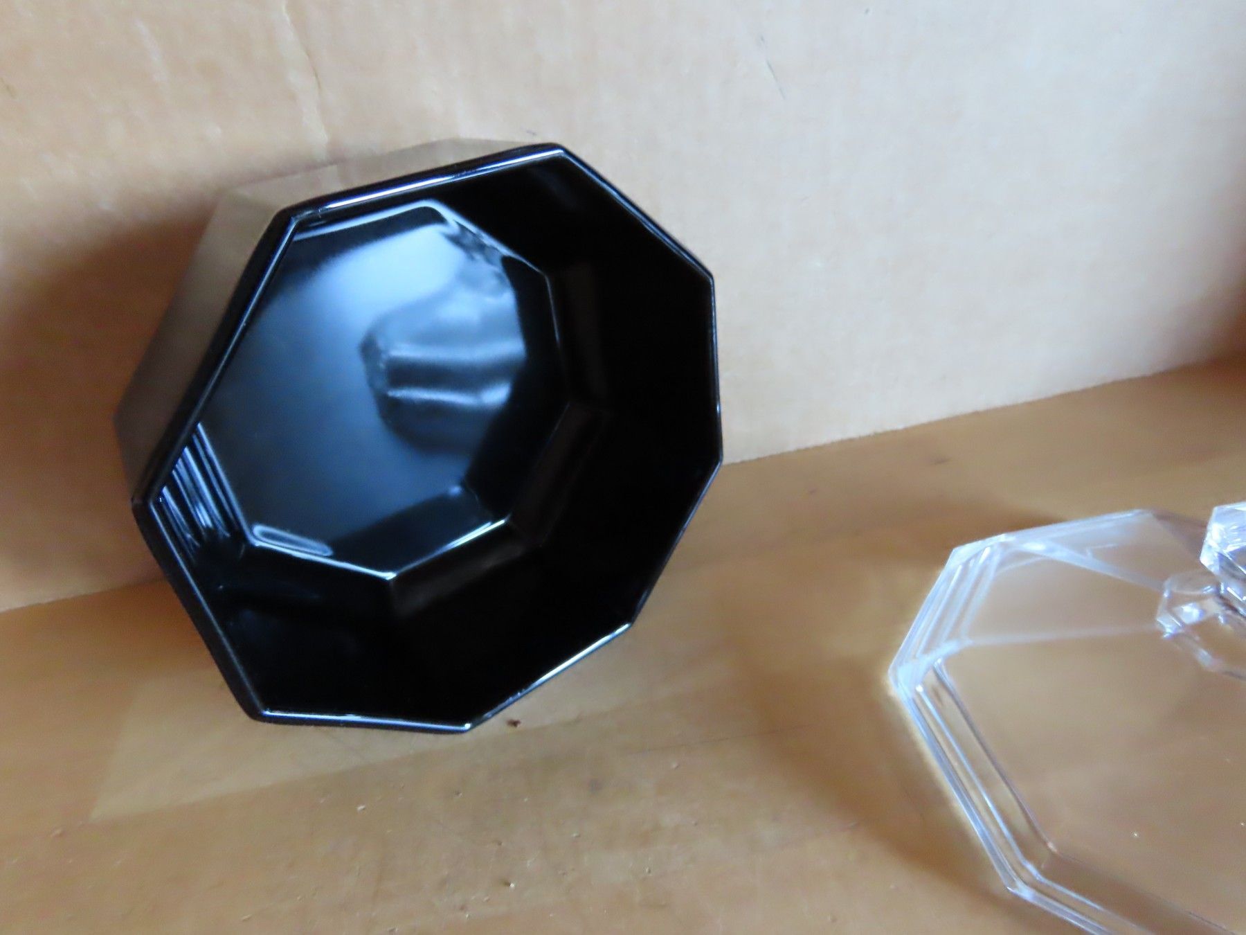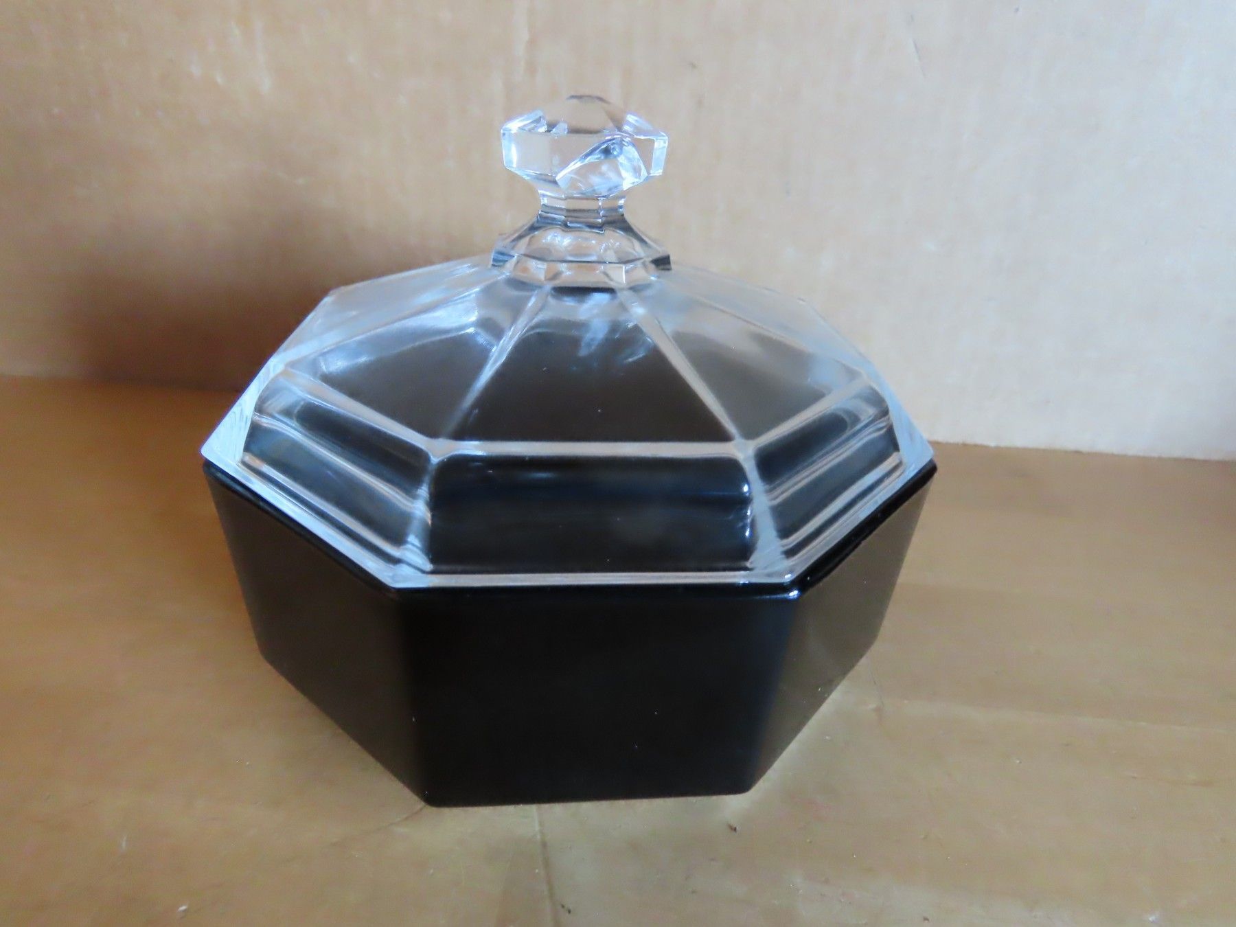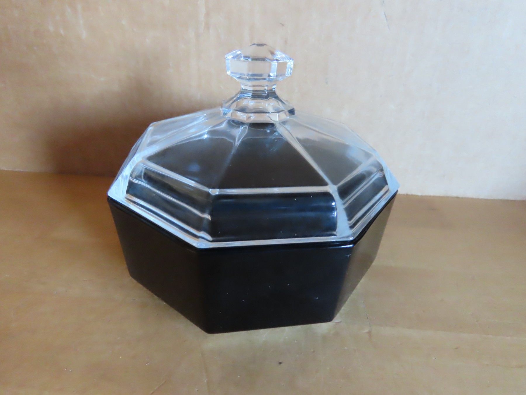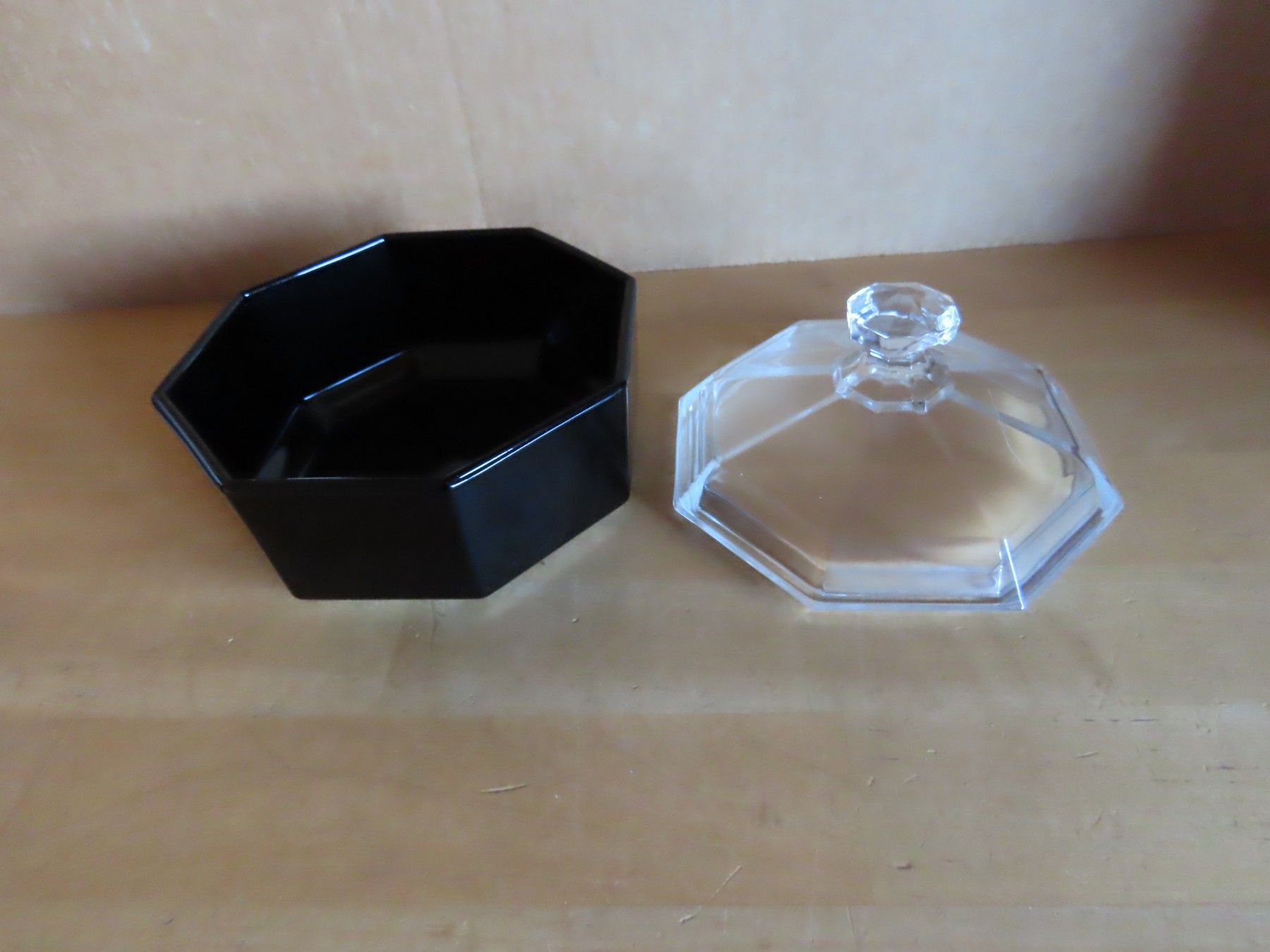kleines Schälchen Glas 8eckig schwarz mit klarem Deckel Arcoroc