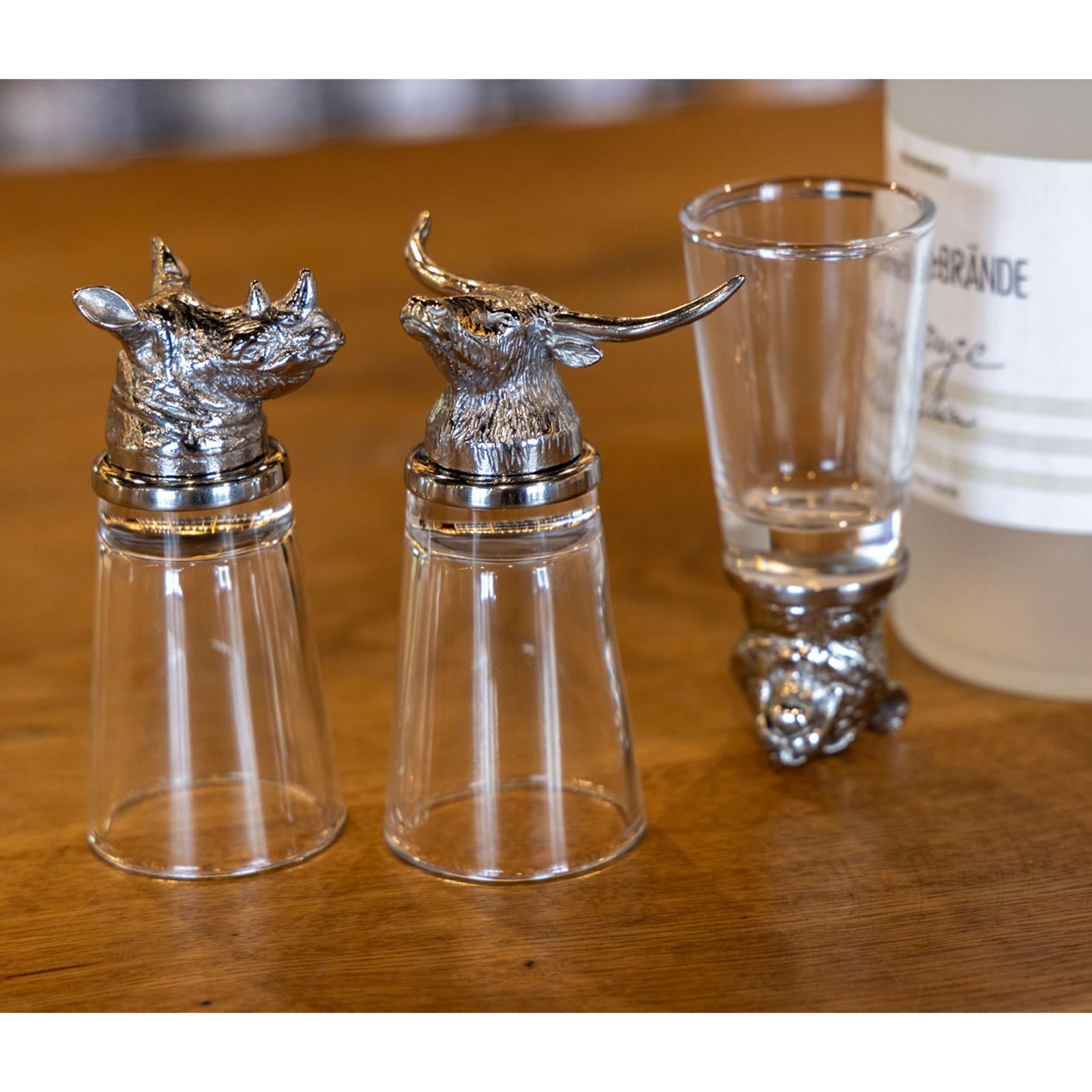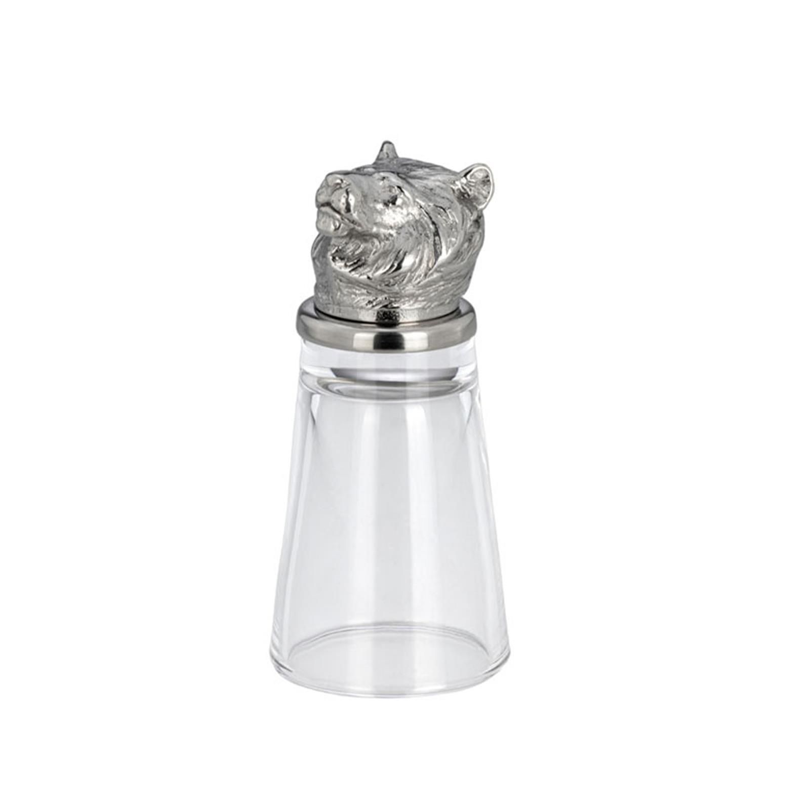 kleines Schnapsglas für 4 cl mit Löwen Motiv aus Edelstahl 10 cm hoch