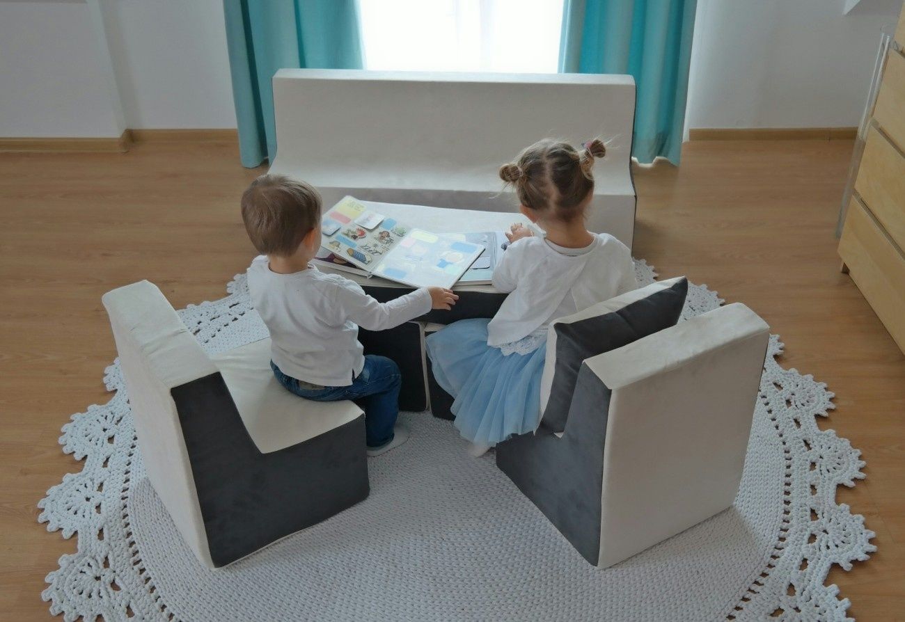 Kleinkinder-Möbelset Schaumstoff grau & beige