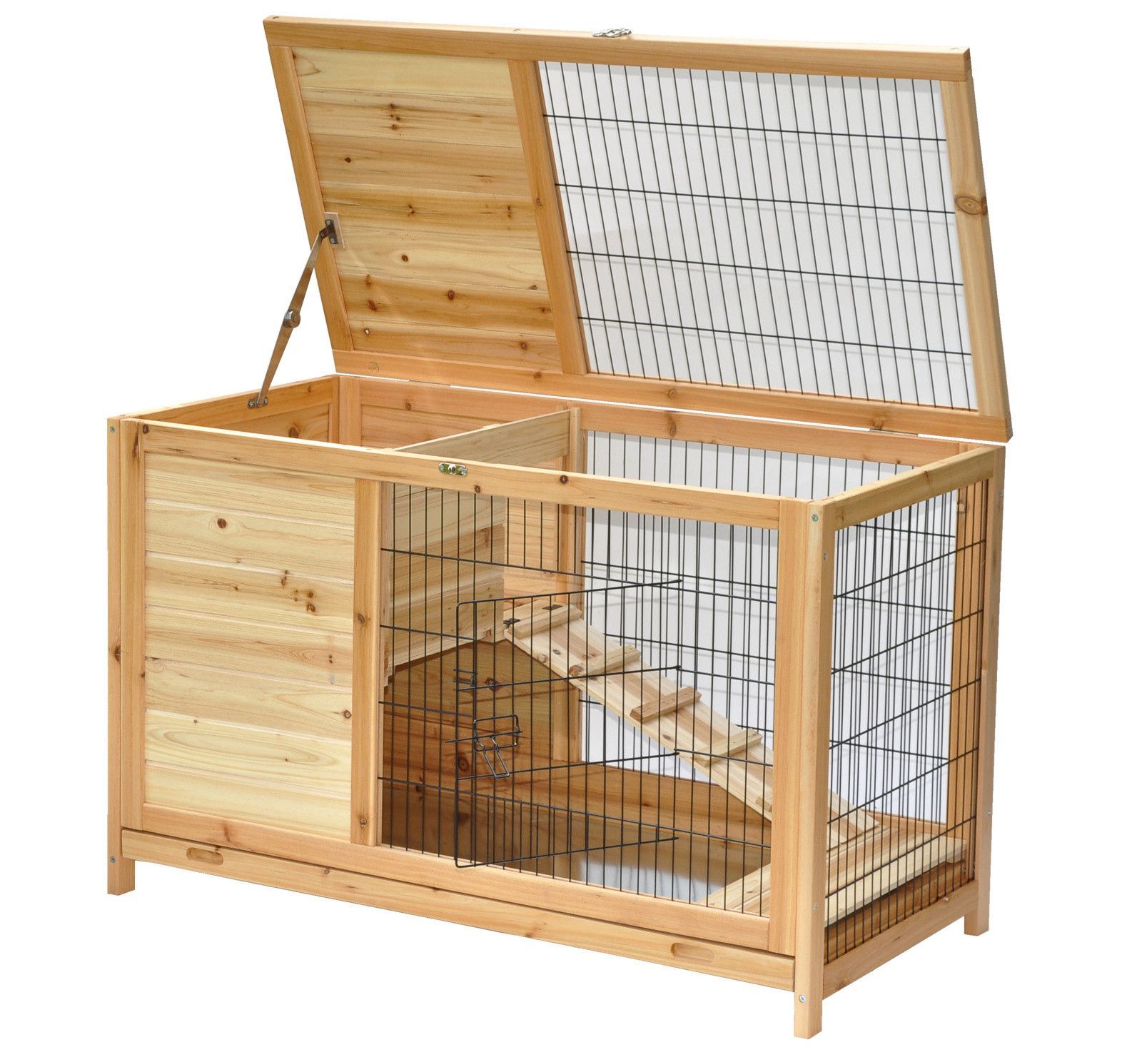 • Kleintierstall Kaninchenstall Hasenstall Cookie -122 cm natur mit Gasdruckfeder