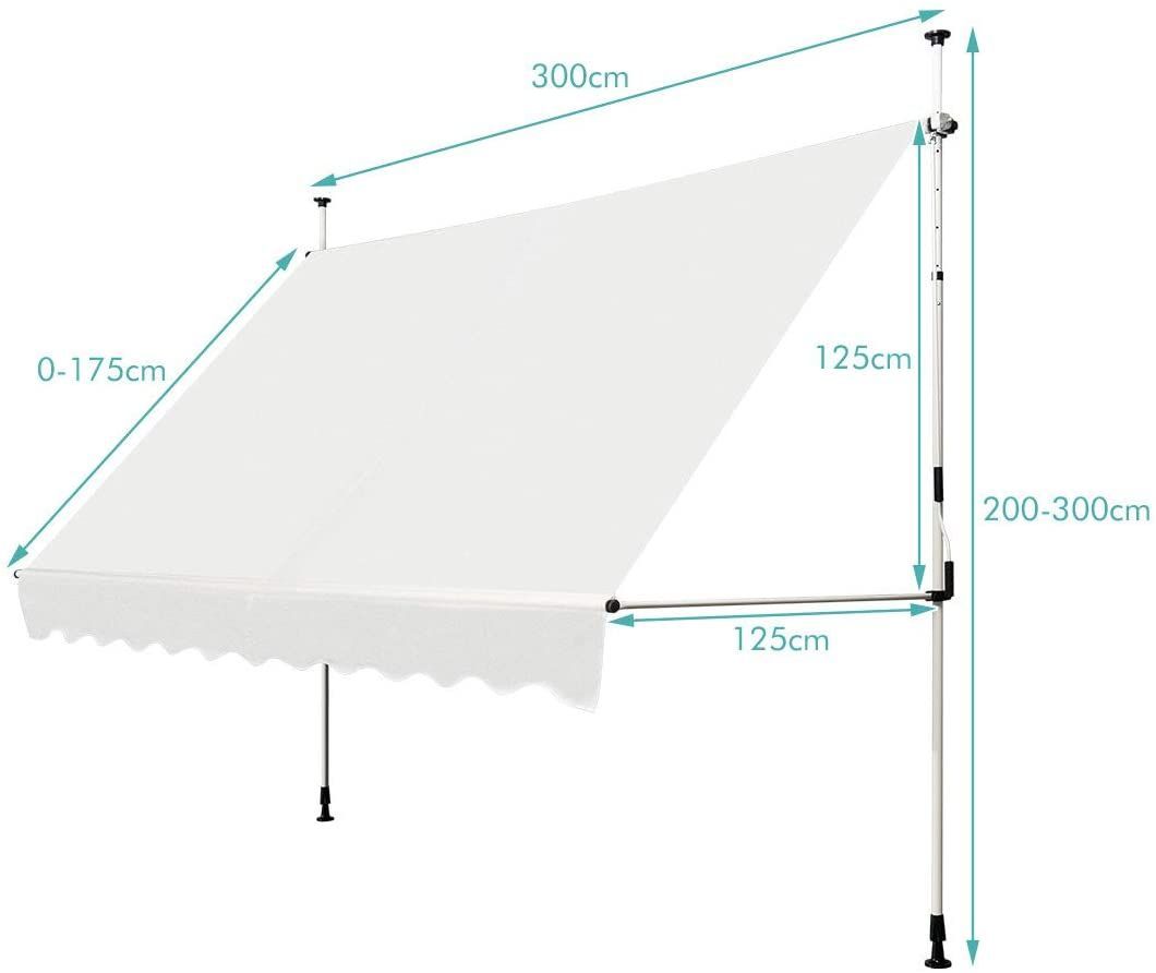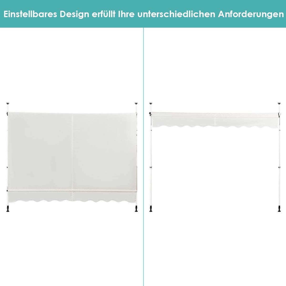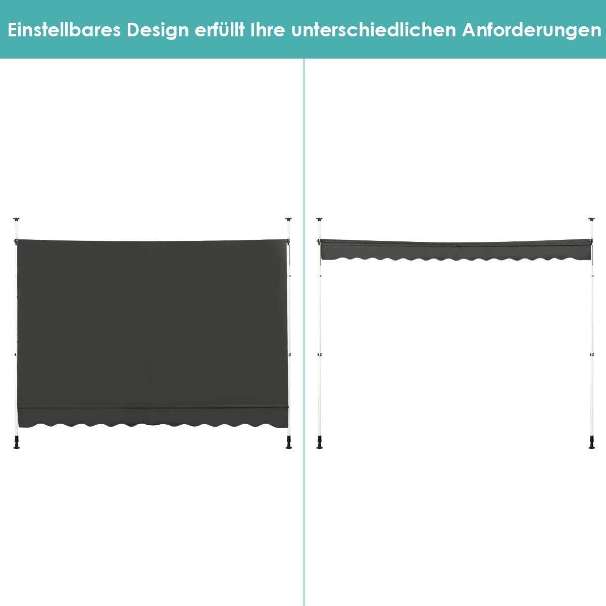 Klemmmarkise Sonnenschutz, Balkonmarkise höhenverstellbar 200-300cm, 300cm breit
