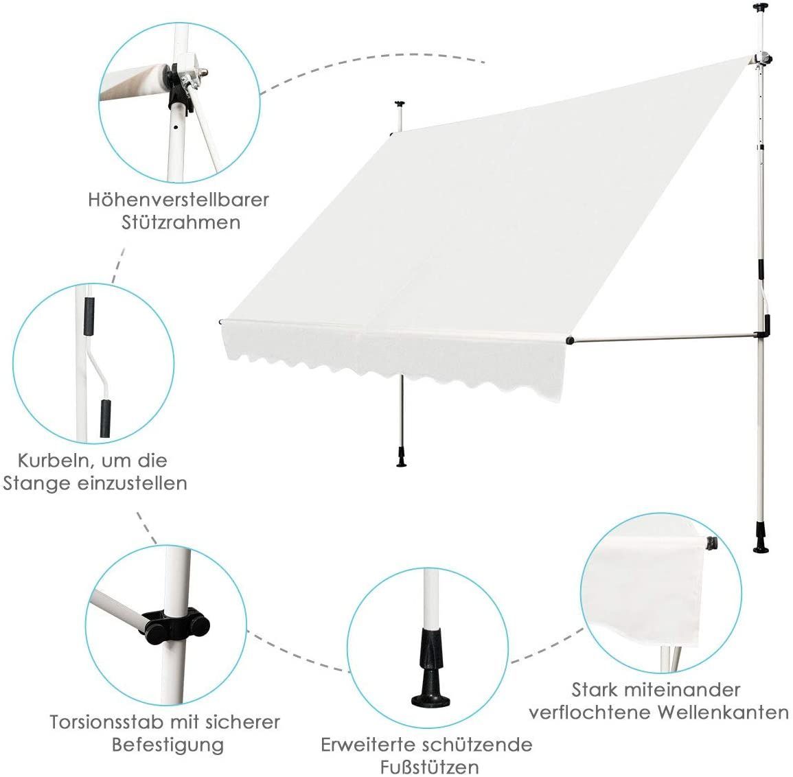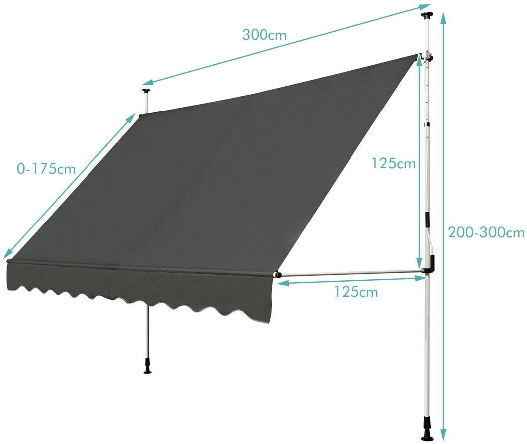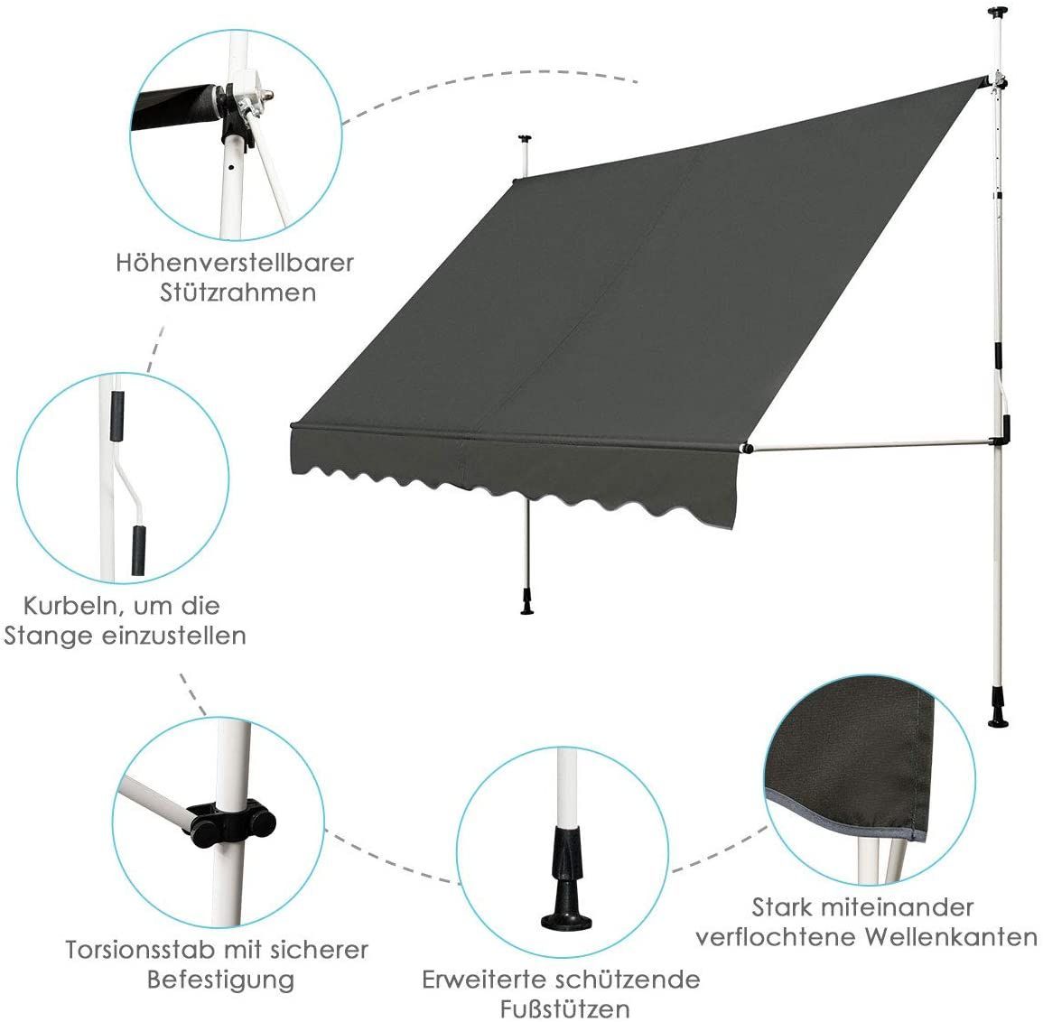 Klemmmarkise Sonnenschutz, Balkonmarkise höhenverstellbar 200-300cm, 300cm breit