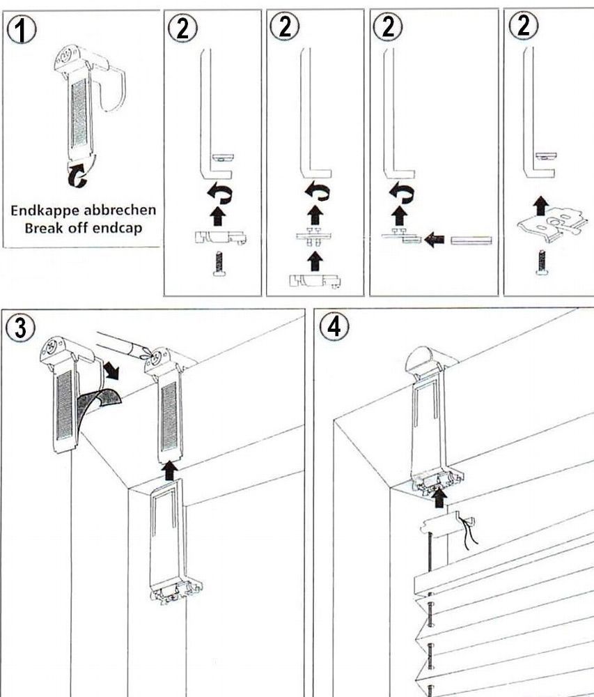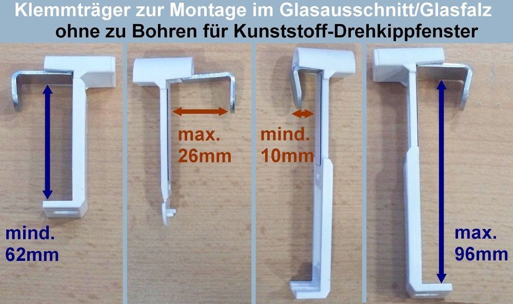 Klemmträger zur Montage von Plissee Jalousie ohne zu Bohren im Glasfalz 4 Farben