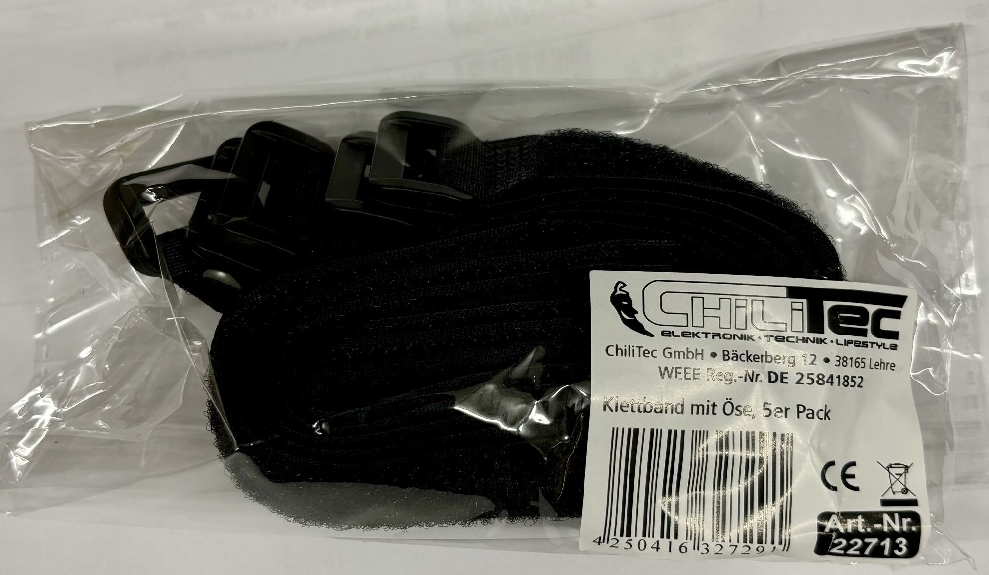 ChiliTec Klettband mit Öse, 5er Pack 30x2cm, schwarz