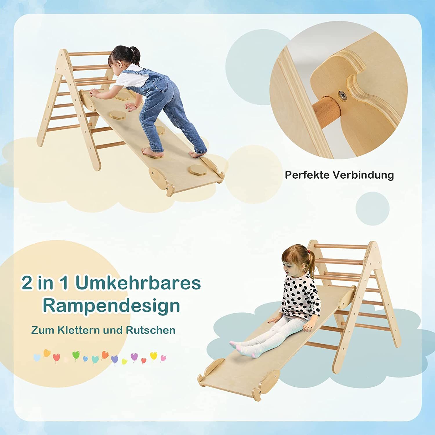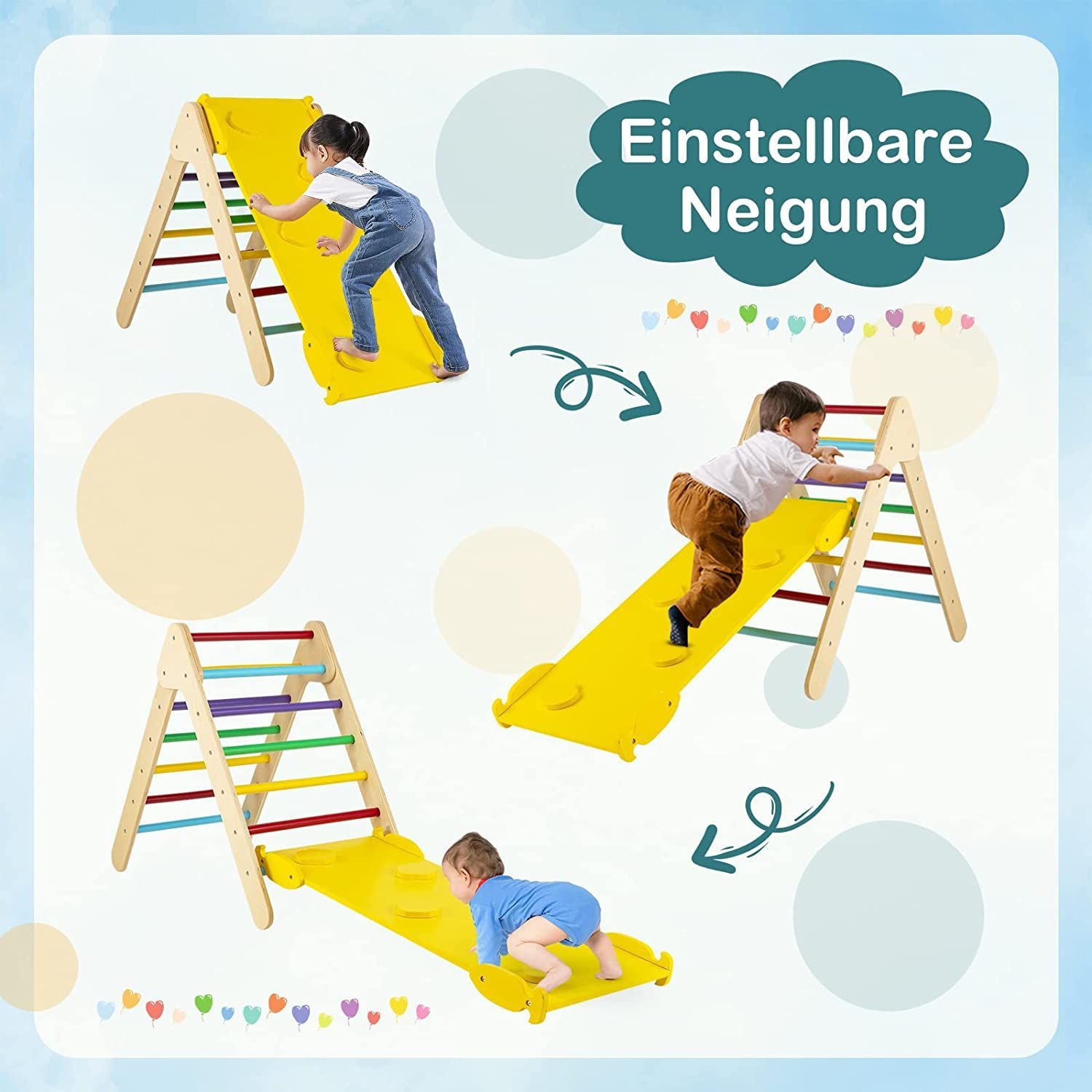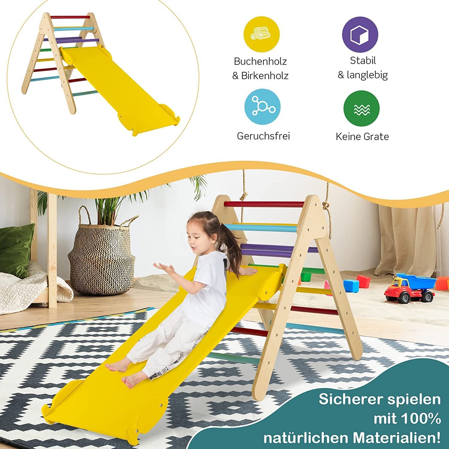 Kletterdreieck mit Rampe, Klettergerüst aus Holz, Sprossendreieck zum Klettern