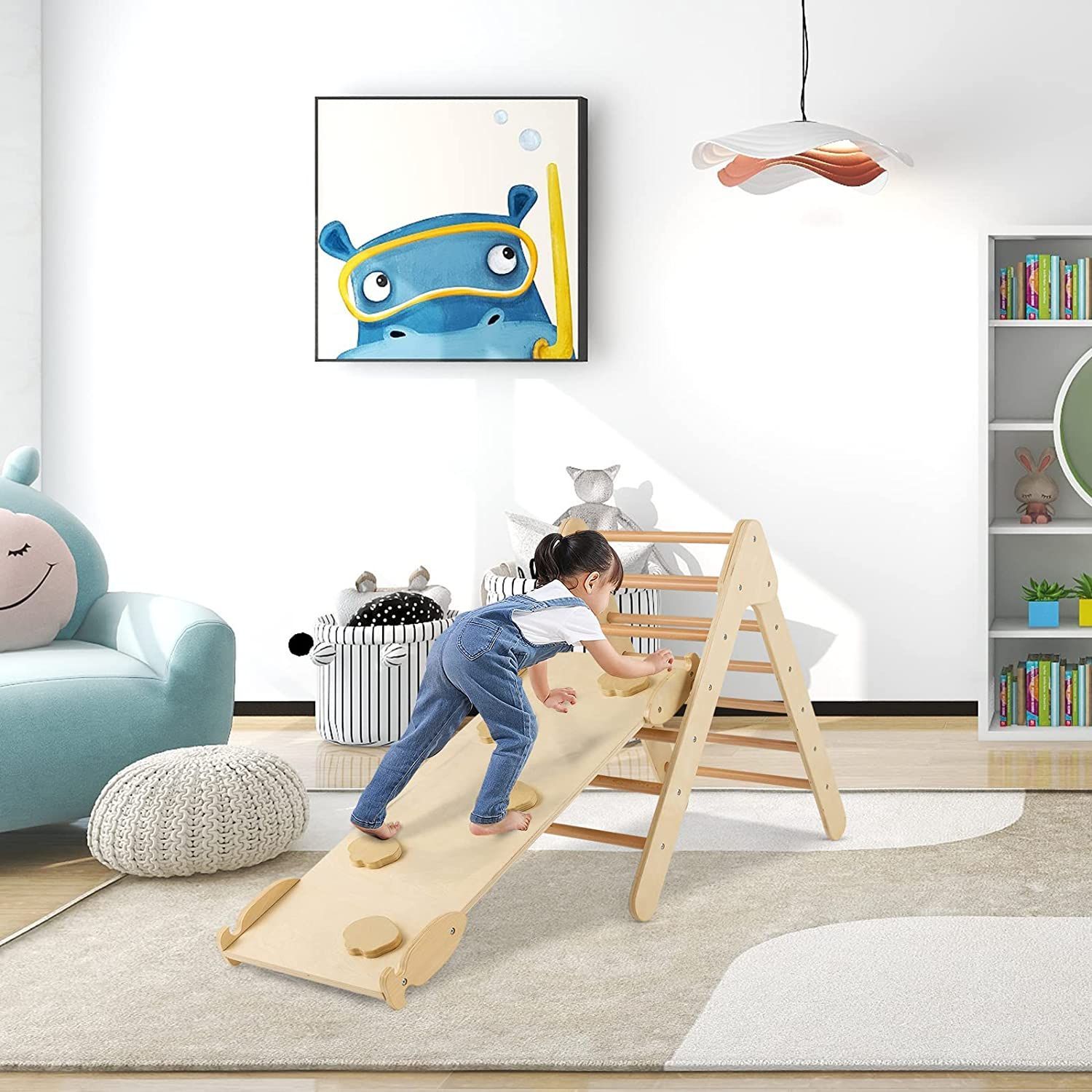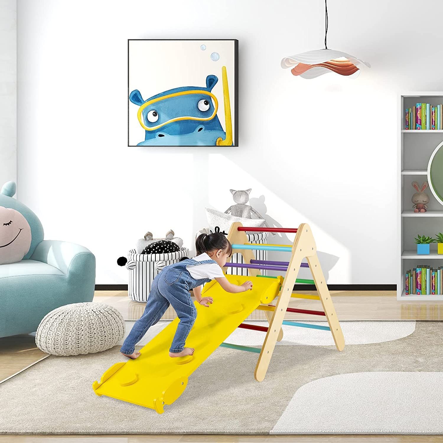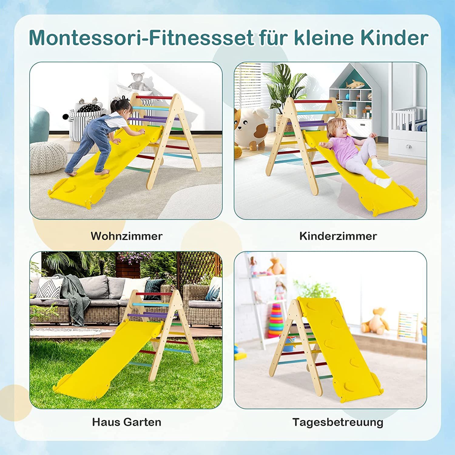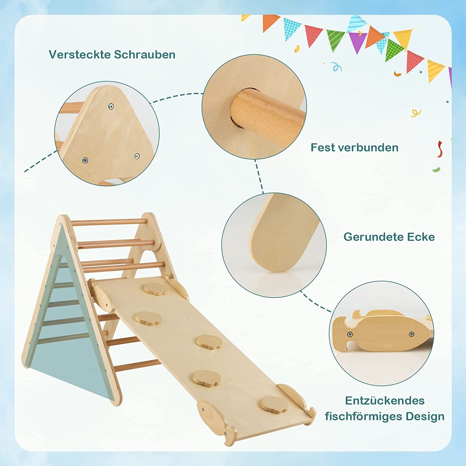 Kletterdreieck mit Rampe, Klettergerüst aus Holz, Sprossendreieck zum Klettern