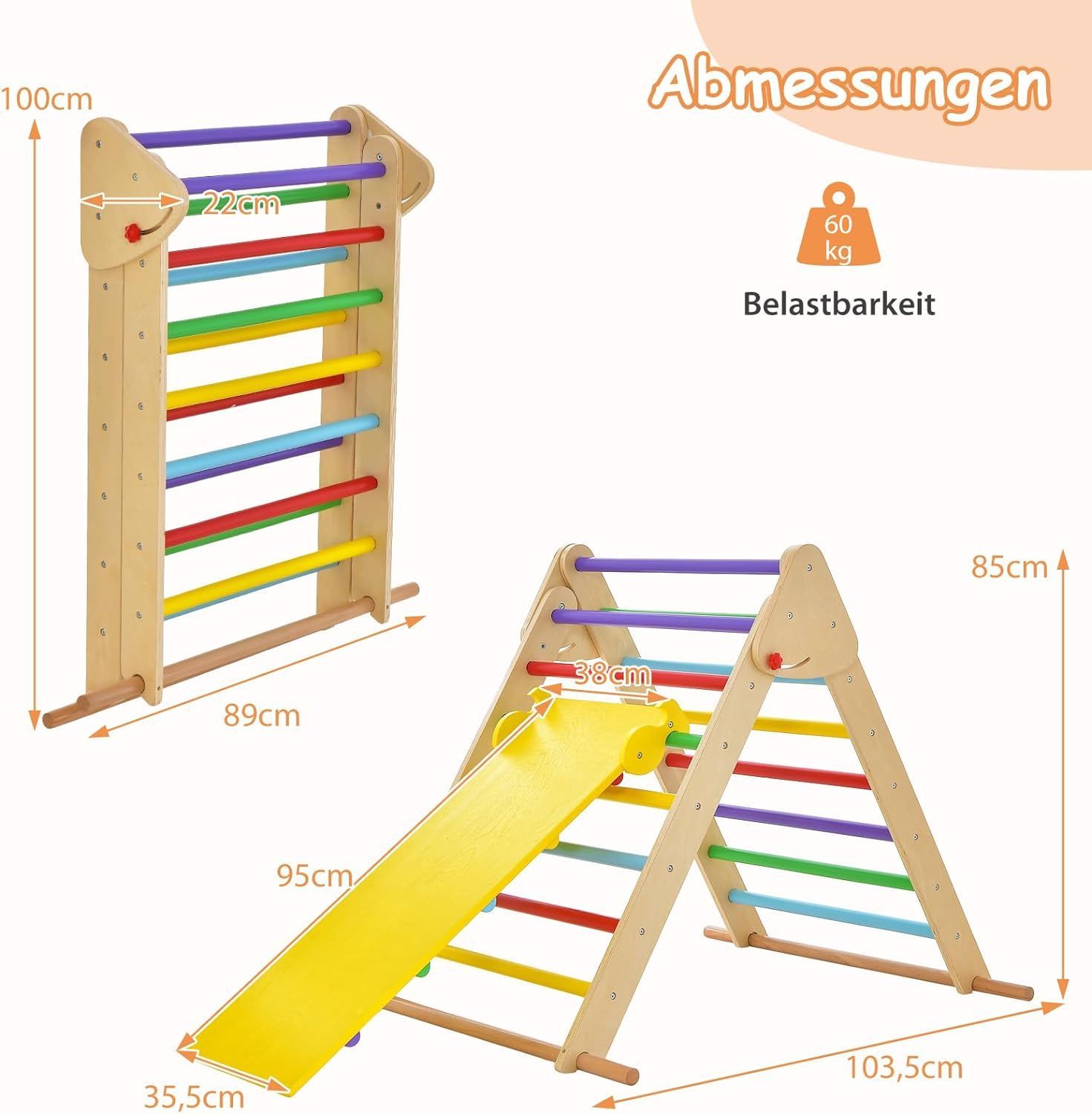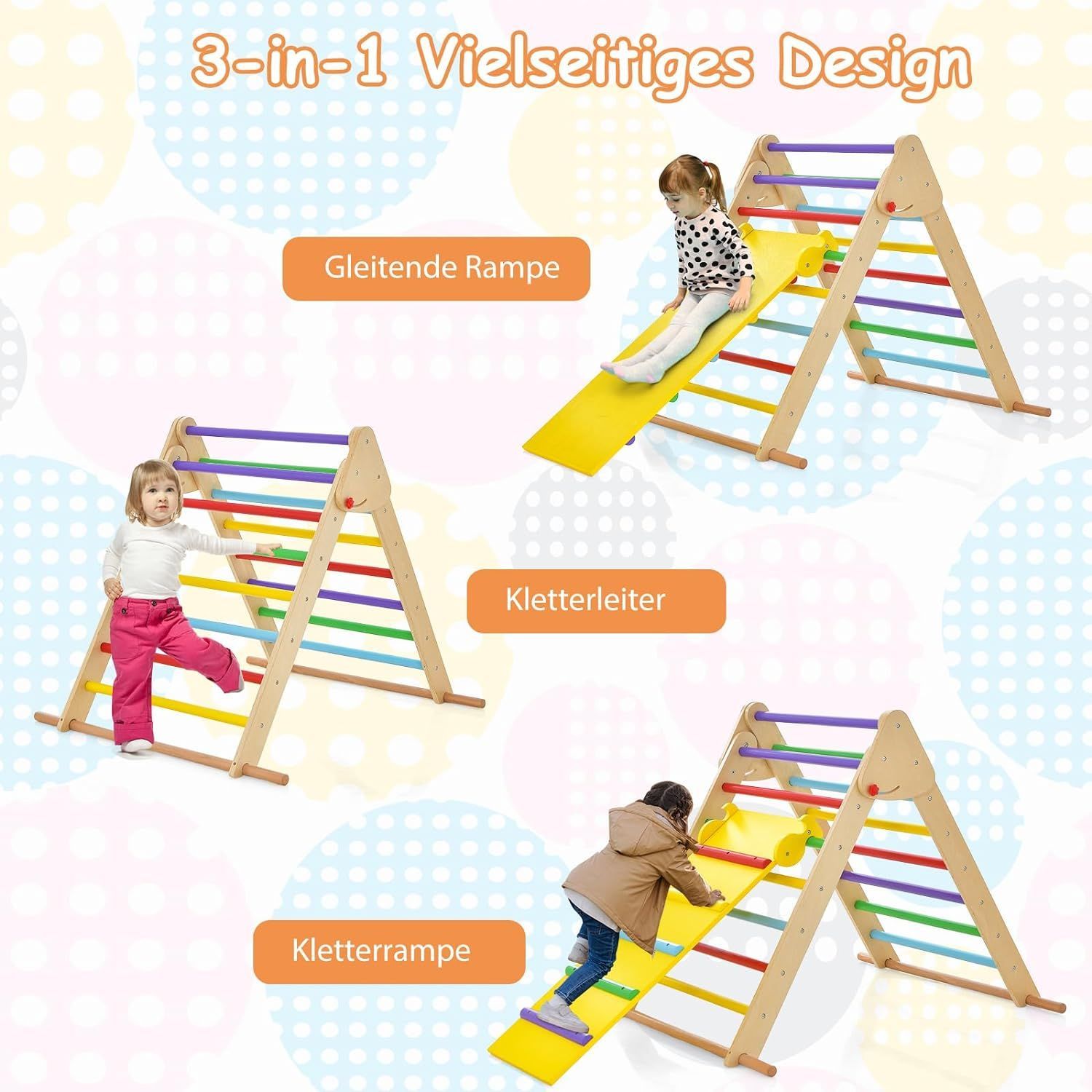 Kletterdreieck mit Rutsche, 3 in 1 Klettergerüst Indoor klappbar, Sprossendreieck
