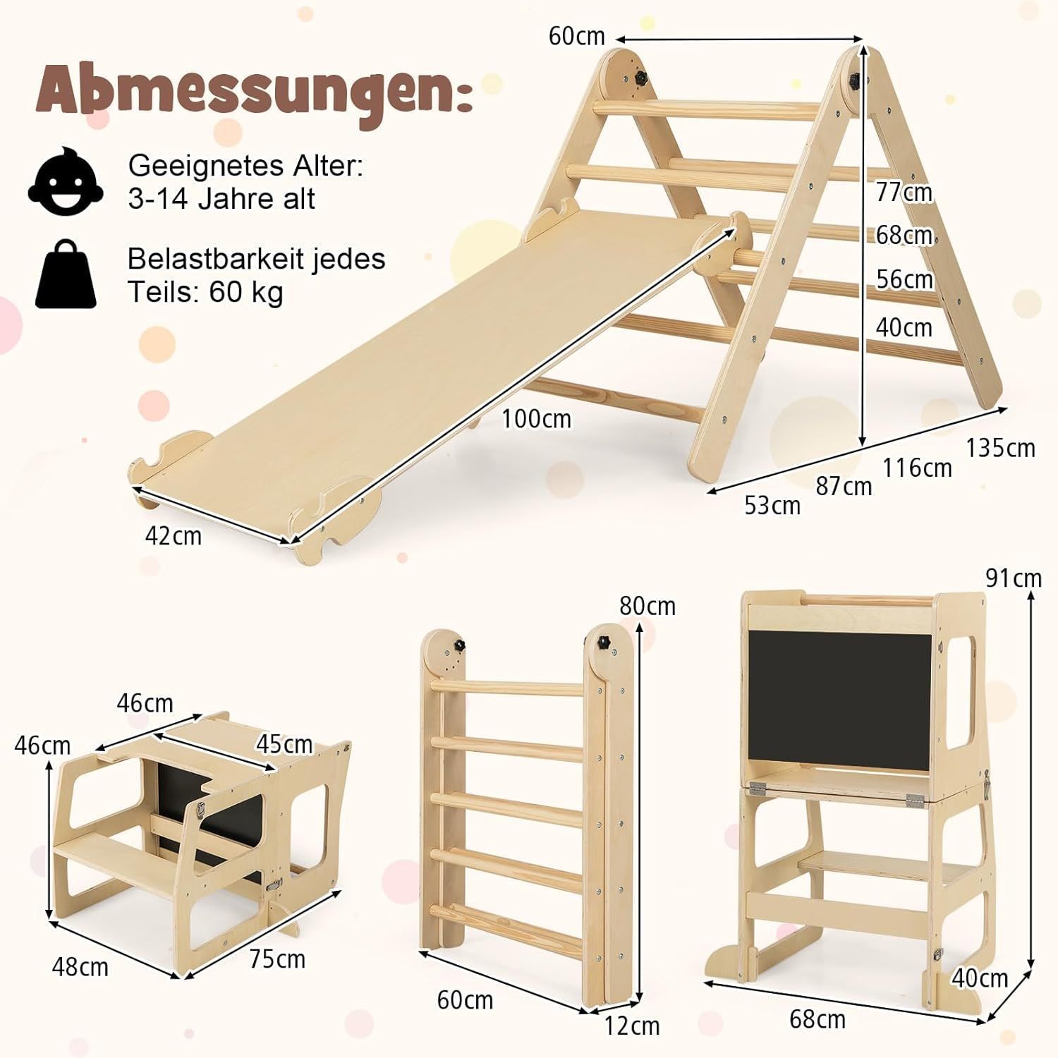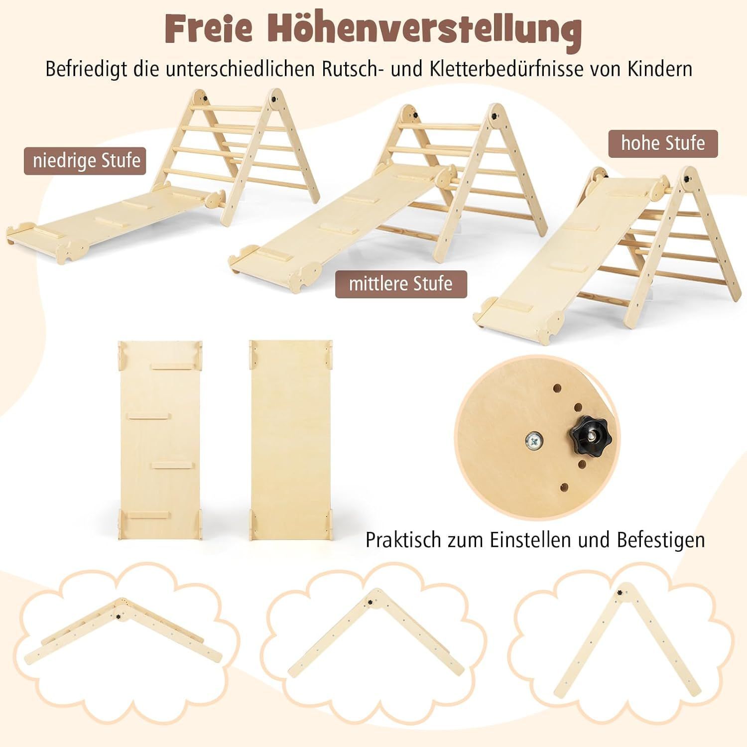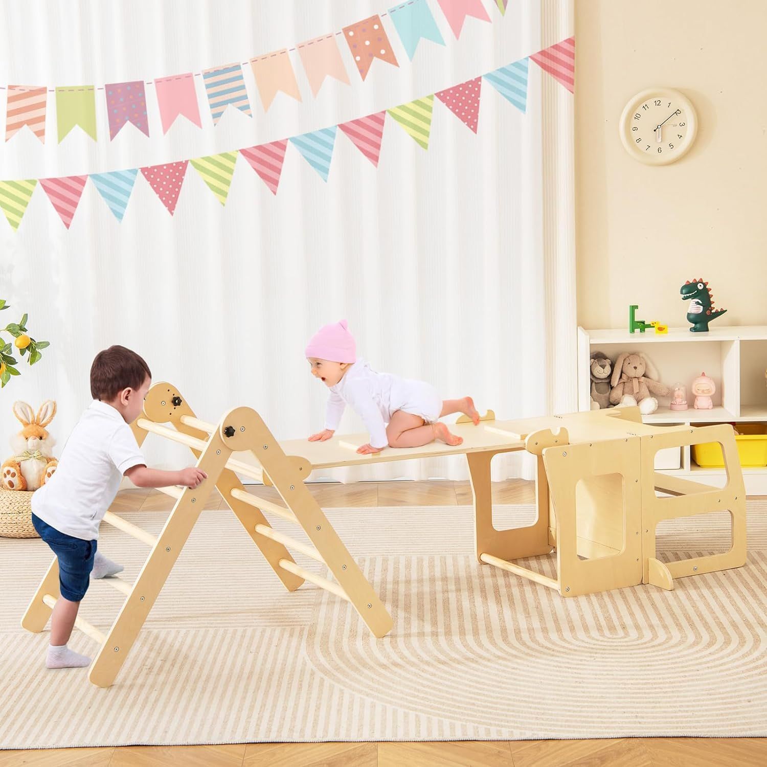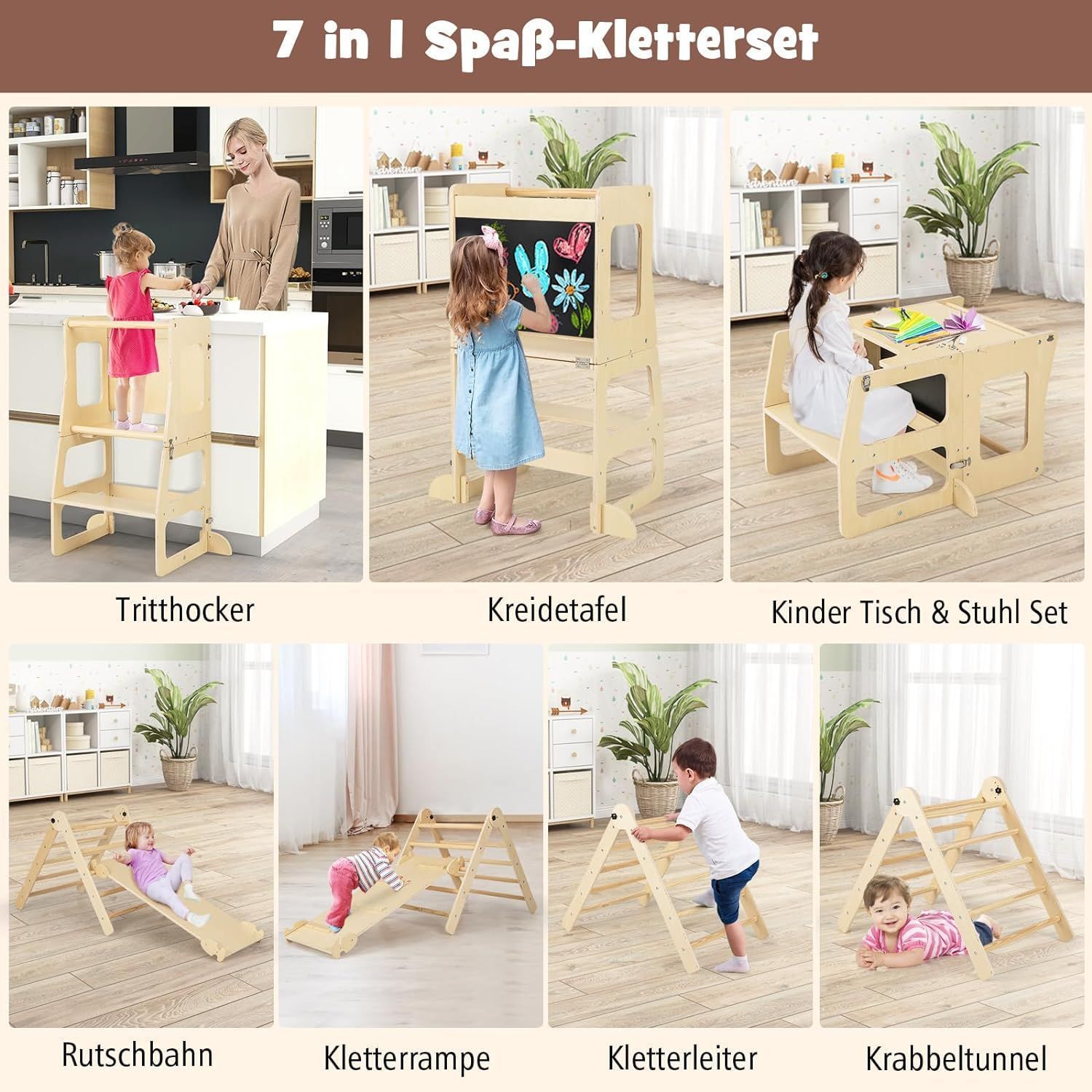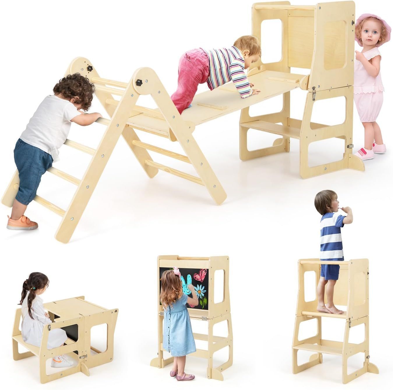 Kletterdreieck mit Rutsche, 7 in 1 Klettergeräst Indoor für Kinder ab 3 Jahren