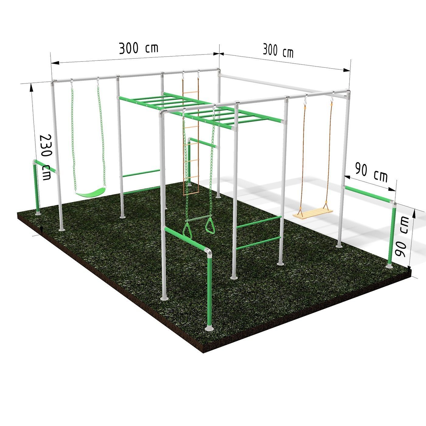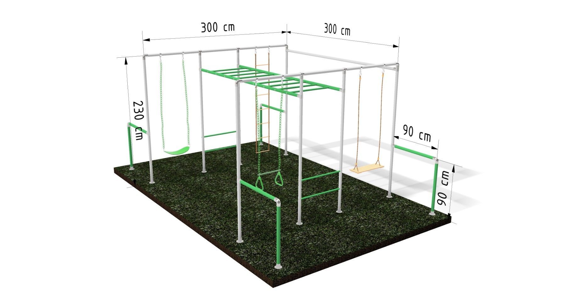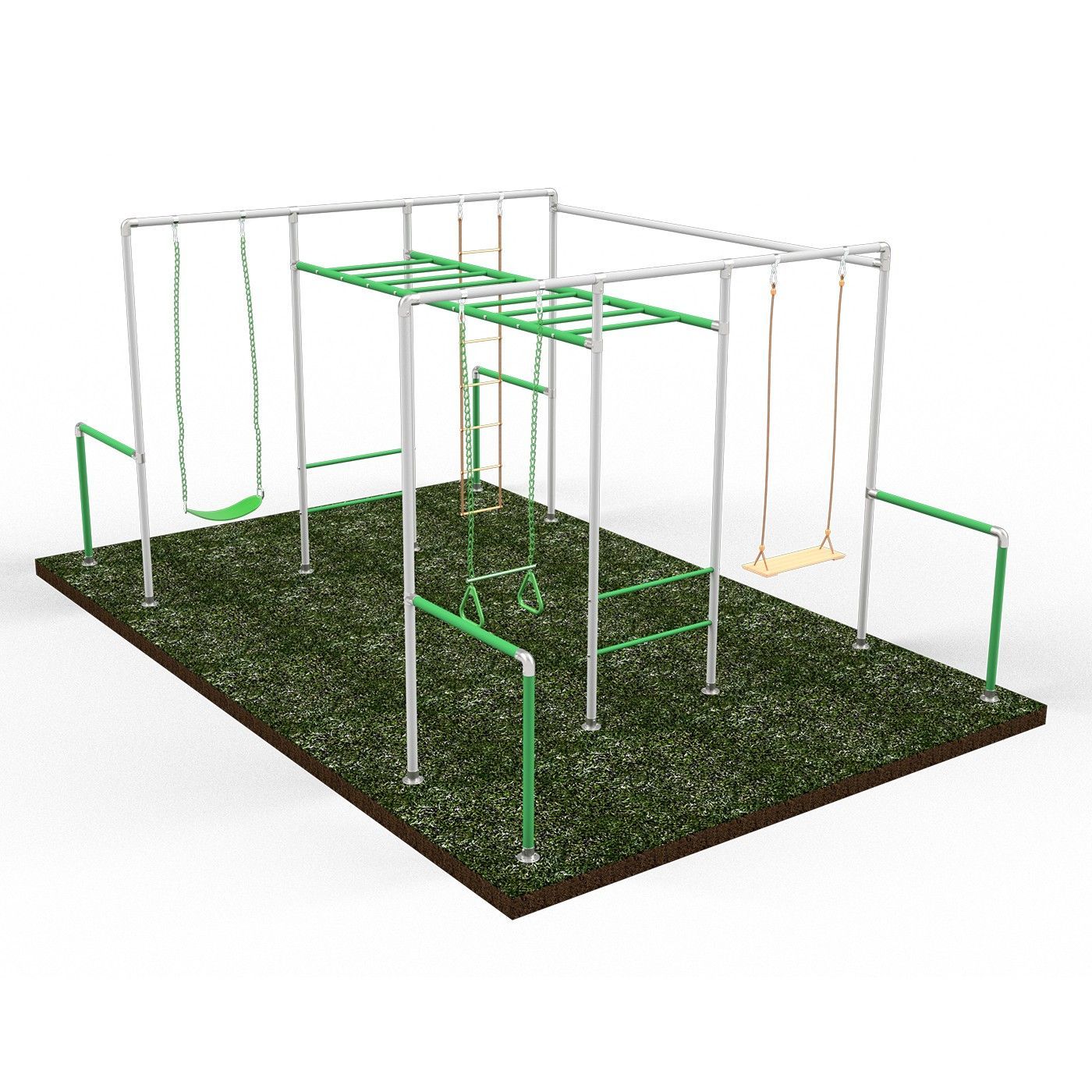 Klettergerüst BIG ACTION mit 2 Schaukeln, 1x Trapez und einer Strickleiter,
