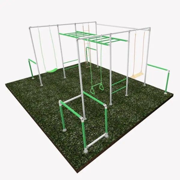 • Klettergerüst Ninja ACTION mit DipStation, 2x Schaukel, Trapez, Strickleiter