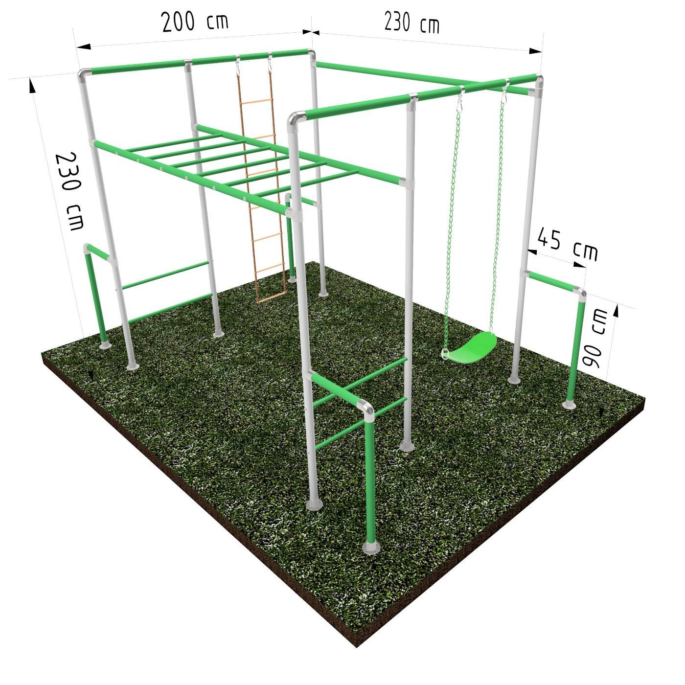 Klettergerüst Little Action Plus mit Sprossenwand und Dipstation, Schaukel und Trapez