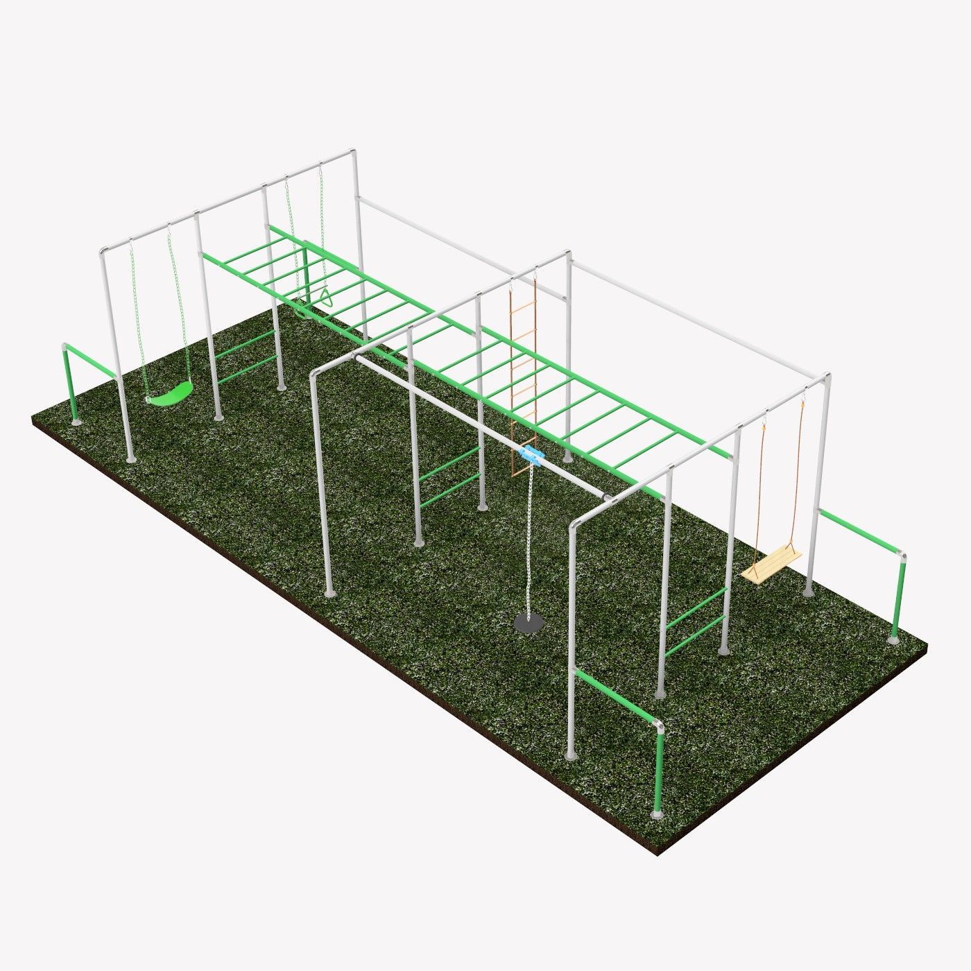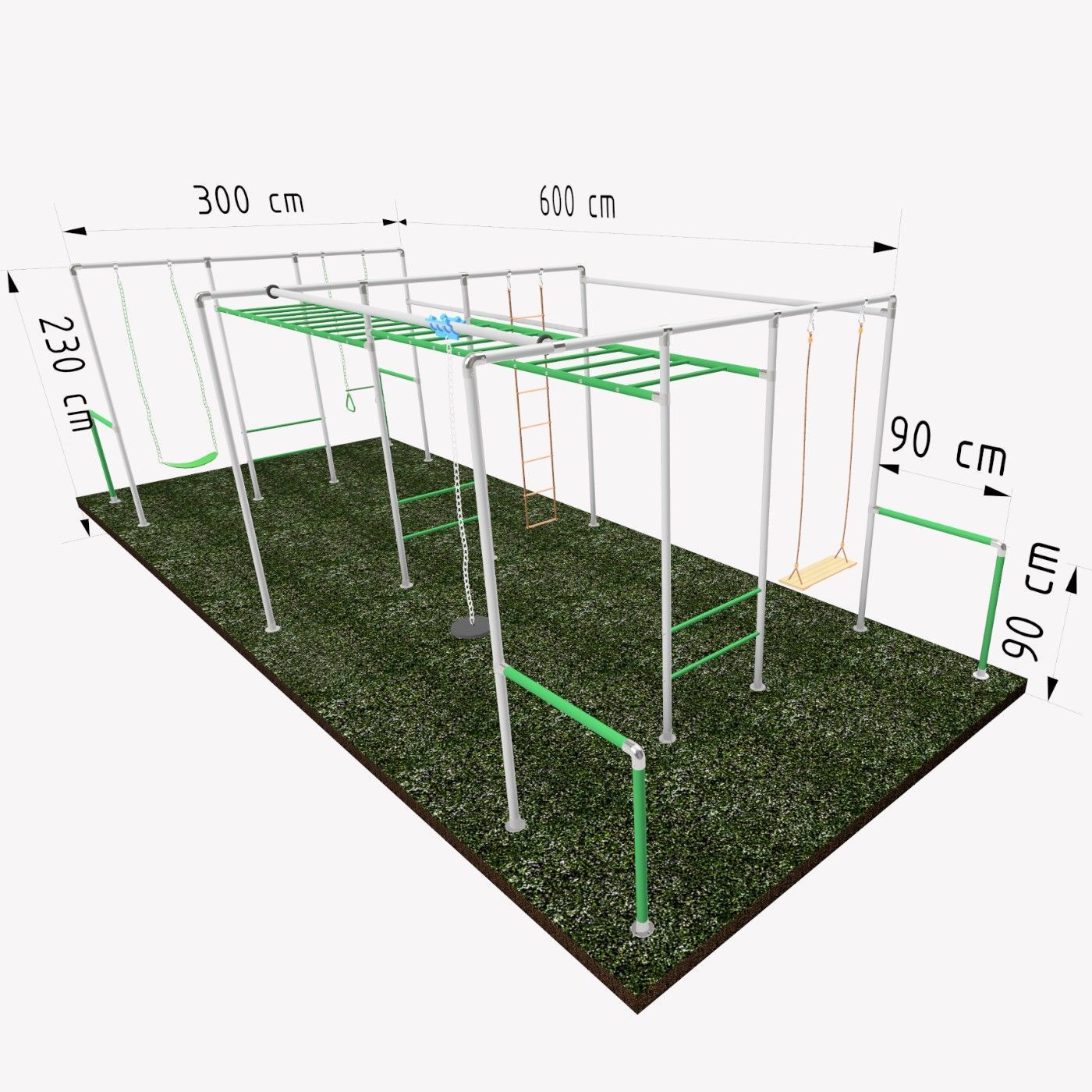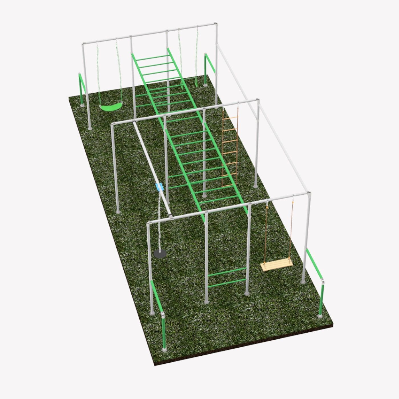 Klettergerüst Ninja ACTION mit Sprossenwand, 1x Schaukel, Trapez, Strickleiter