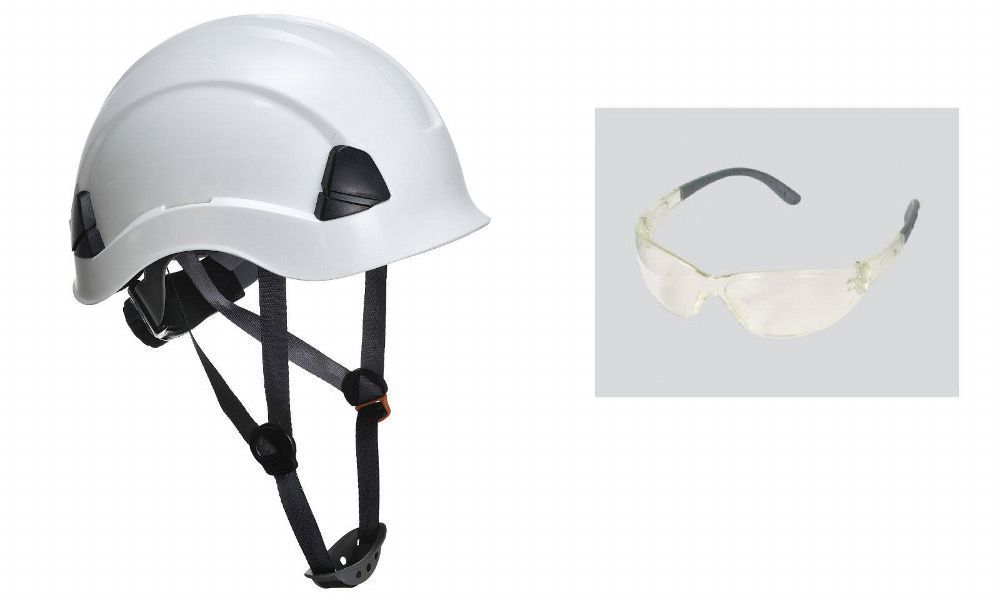 Kletterhelm EN397 + Schutzbrille UV400 Bersteiger Helm Fallschutz Kopfschutz