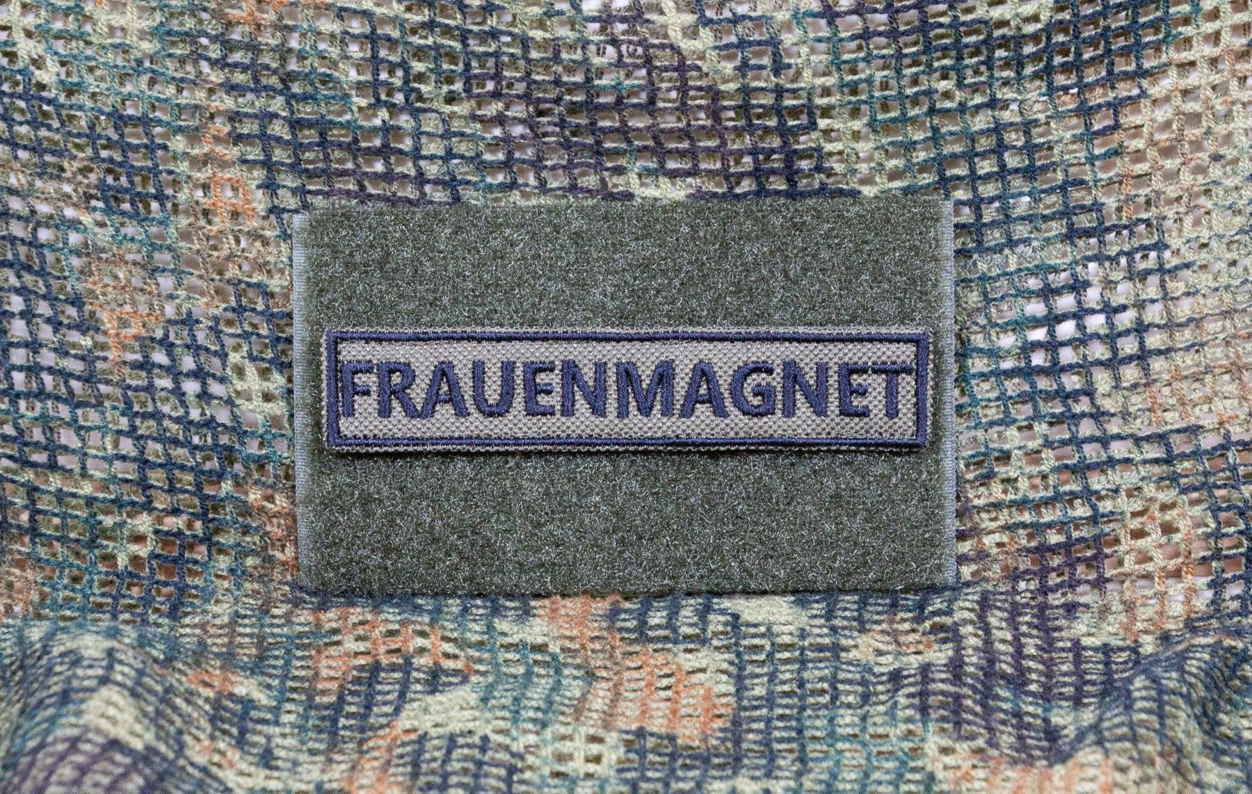 Dieser Patch mit dem Schriftzug Frauenmagnet hat eine vernähte Klettrückseite und eignet sich u. a. zum Anbringen an den Schlüsselanhänger mit Flausch. Die Maße betragen: Breite: 2 cm, Länge: ca. 10 cm.