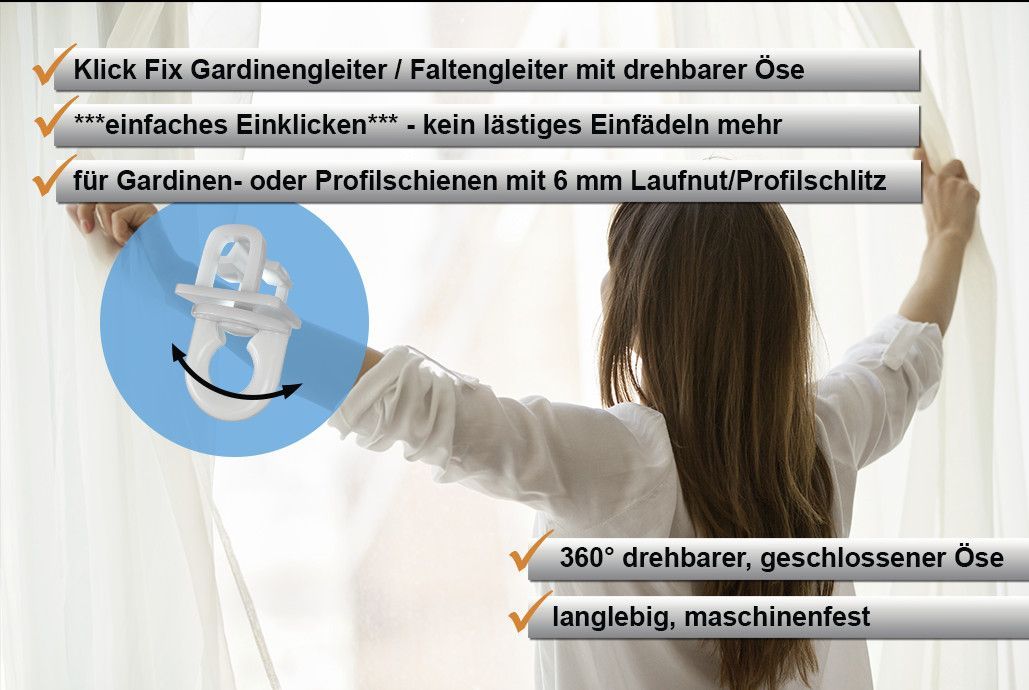 Klick Fix Gardinengleiter Faltengleiter mit geschlossener, drehbarer Öse