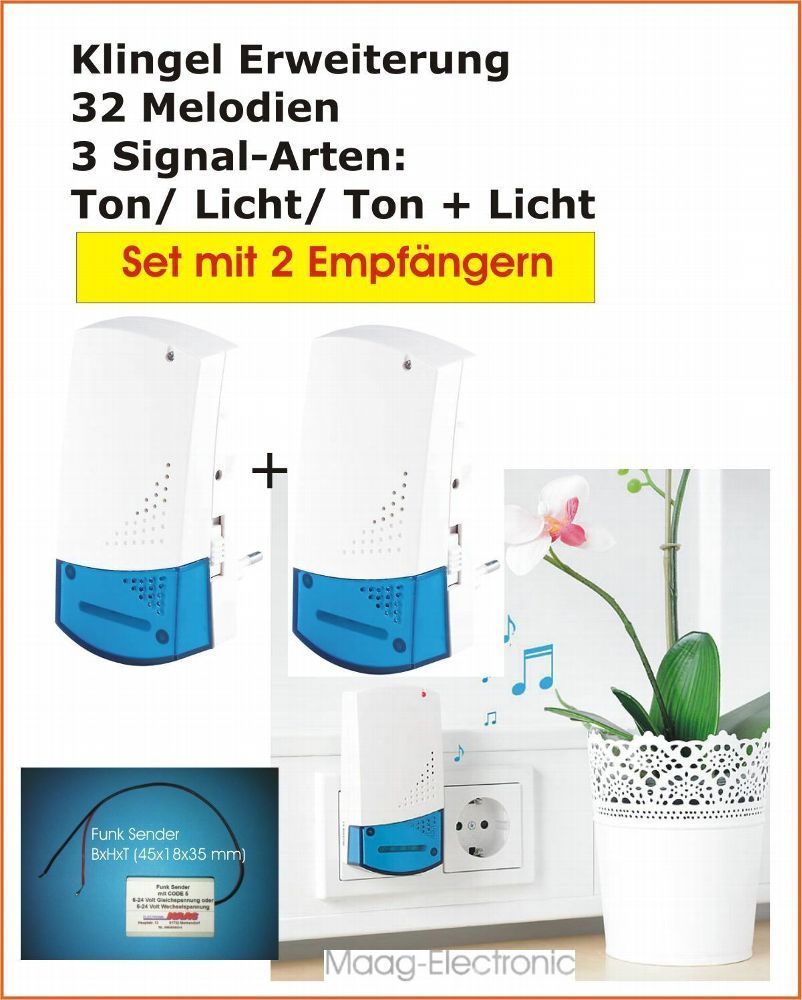 und das ohne viel Montagearbeit. Einfach die 2 Kabel des Senders am Türgong anschließen, die Empfänger da einstecken wo man sie gerade braucht. Man muß auch nicht mehr auf Batterien achten weil Empfänger über Steckdose.