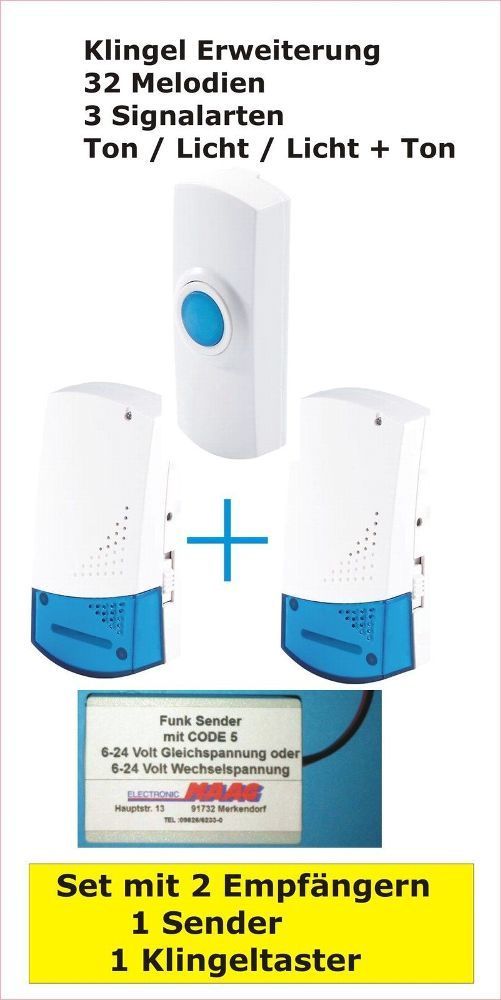 Klingel Erweiterung per Funk Set mit 2 Empfänger und Taster ! Artikel: 300667-2Empf
