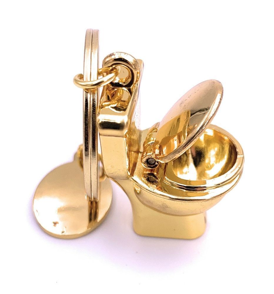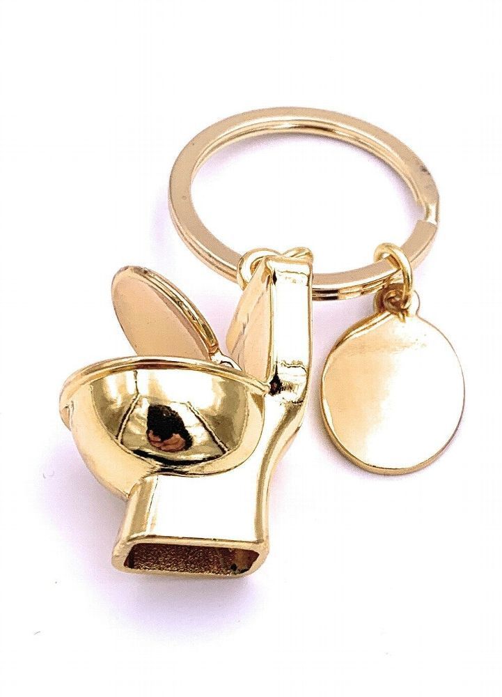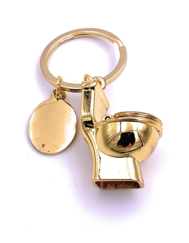 Klo Toilette Schlüsselanhänger Keychain golden aus Metall