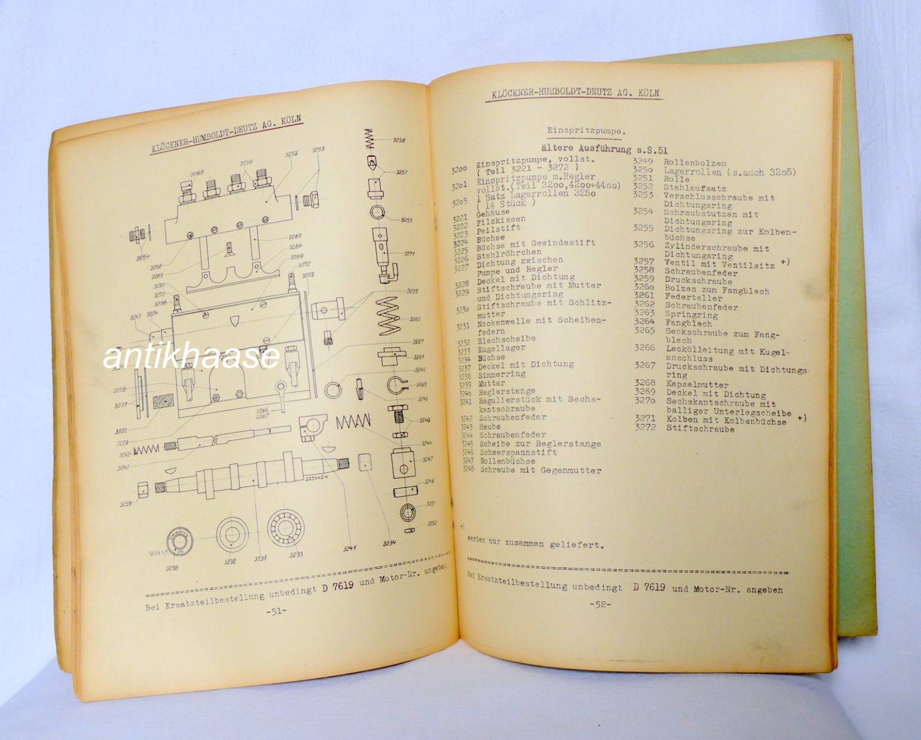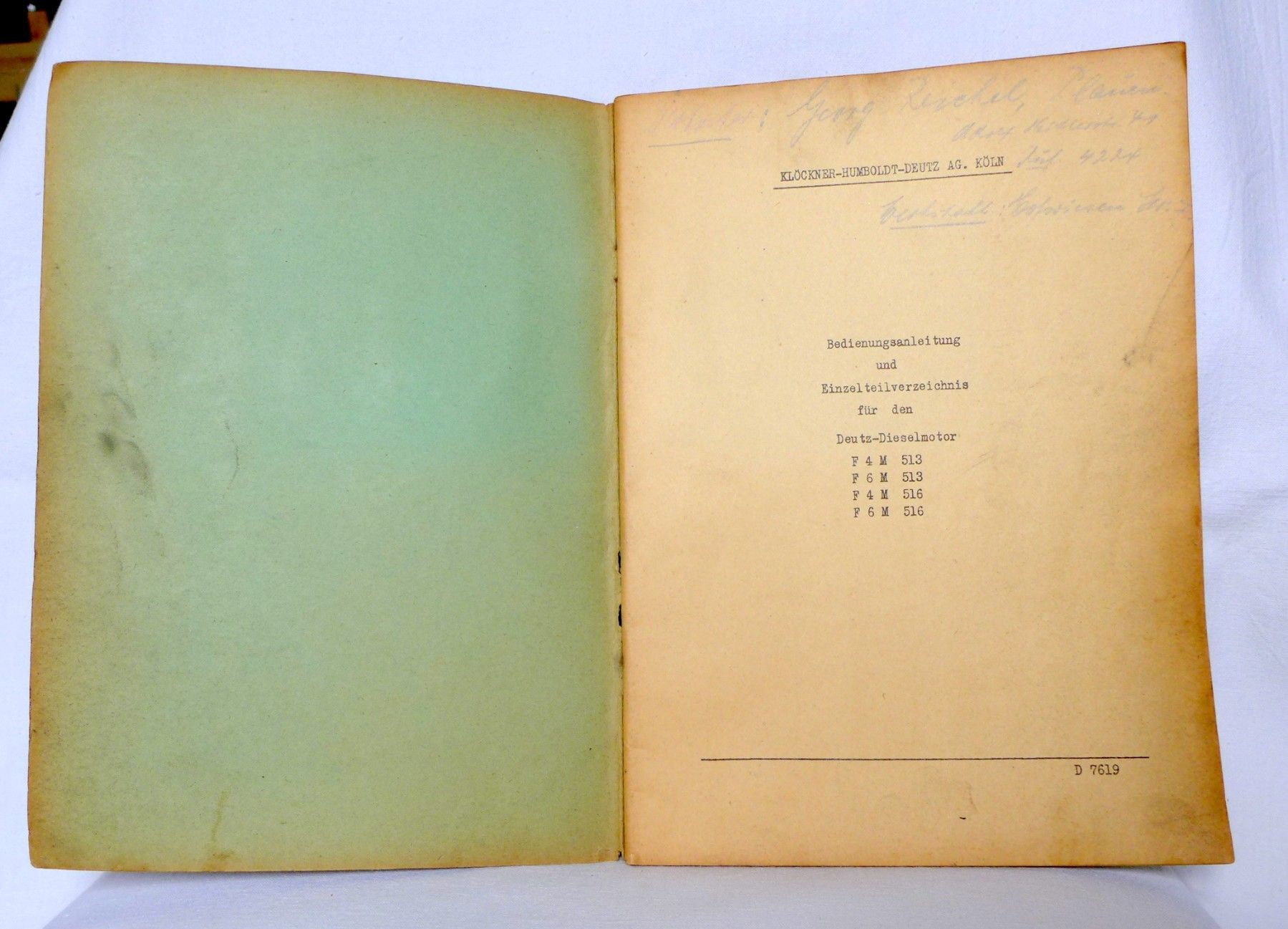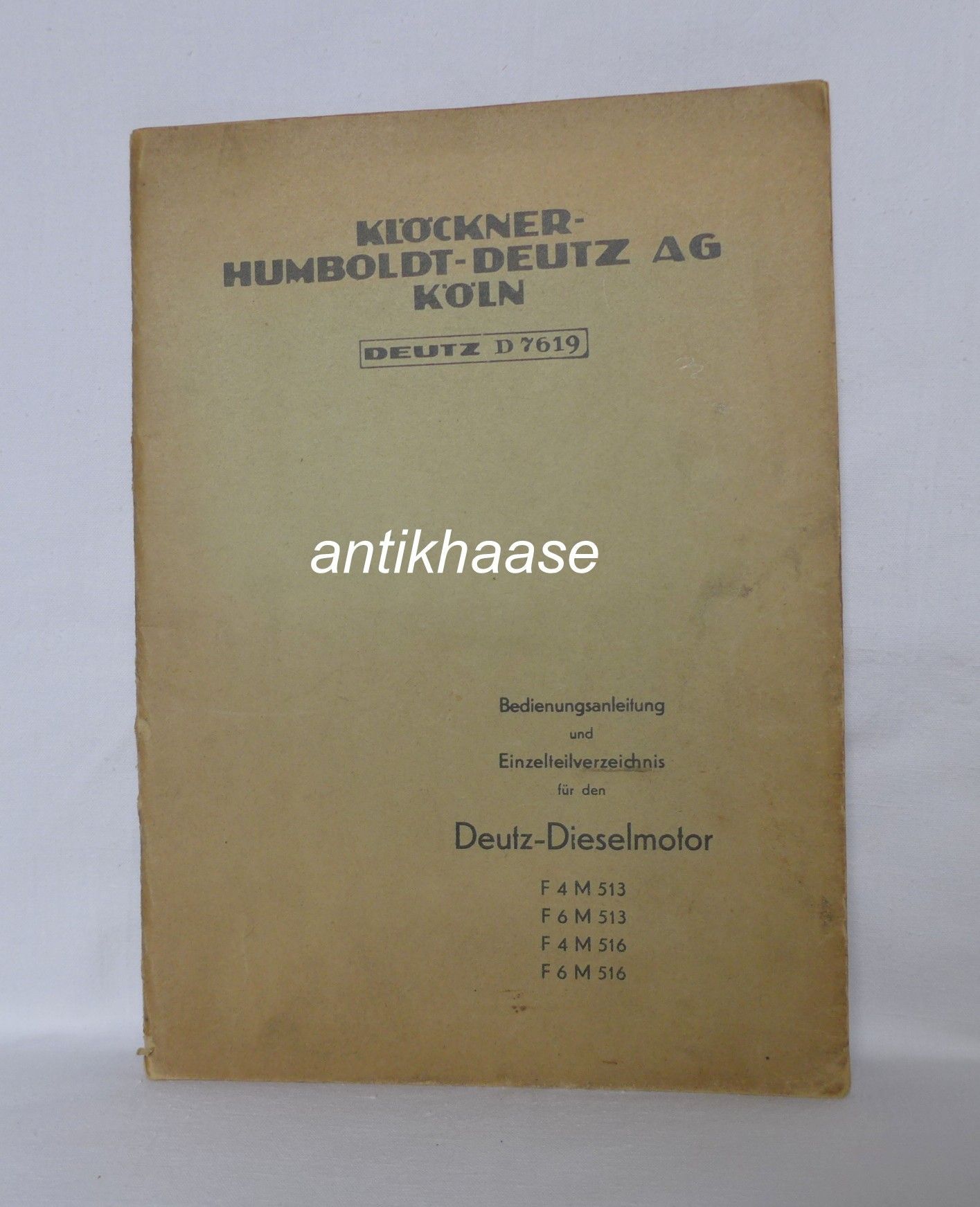 Klöckner Humboldt Deutz D 7619 Dieselmotor Bedienungsanleitung Einzelteilverzeichnis