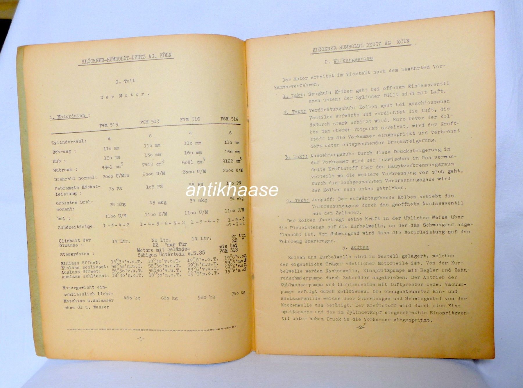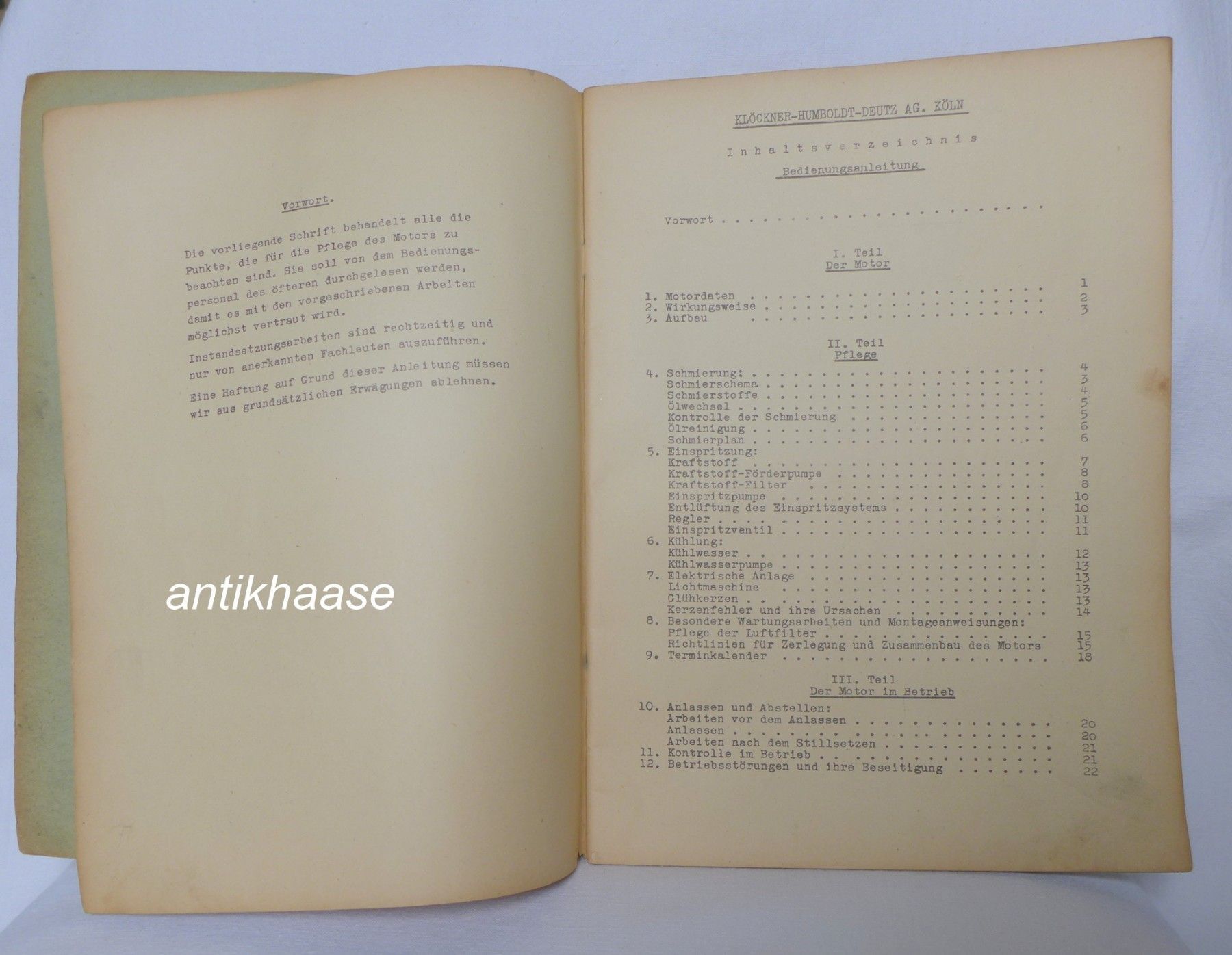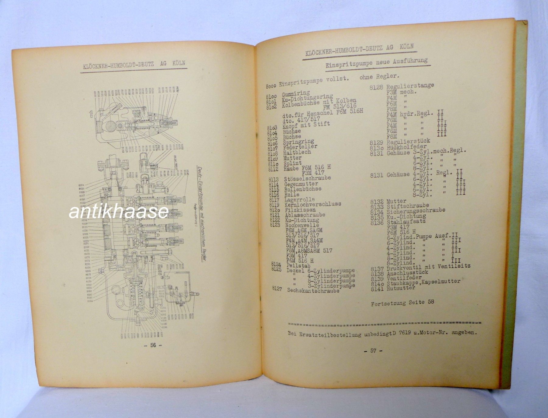 Klöckner Humboldt Deutz D 7619 Dieselmotor Bedienungsanleitung Einzelteilverzeichnis