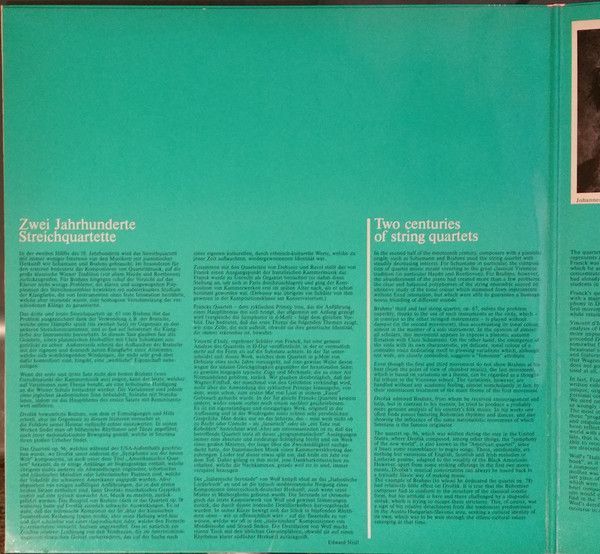 Condition Vinyl Near Mint (NM or M-) Condition Sleeve Near Mint (NM or M-) Tracks included: Johannes Brahms Quartett Nr. 3 op. 67 in B-Dur I 1. Vivace 2. Andante 3. Agitato - Allegretto ma non troppo 4. poco allegretto con variazione Antonin Dvorak "Amerikanisches" Quartett op 96 in F-Dur