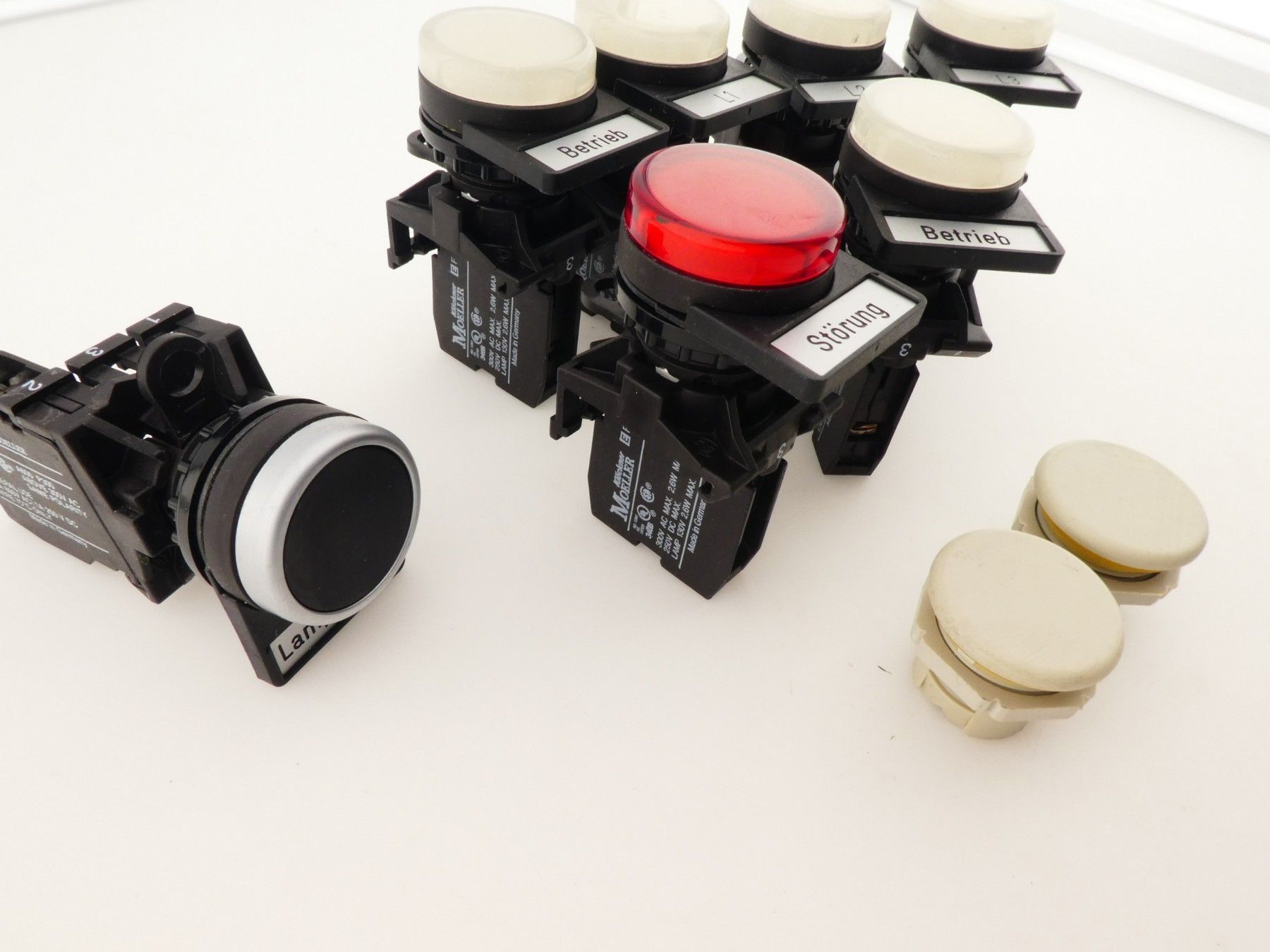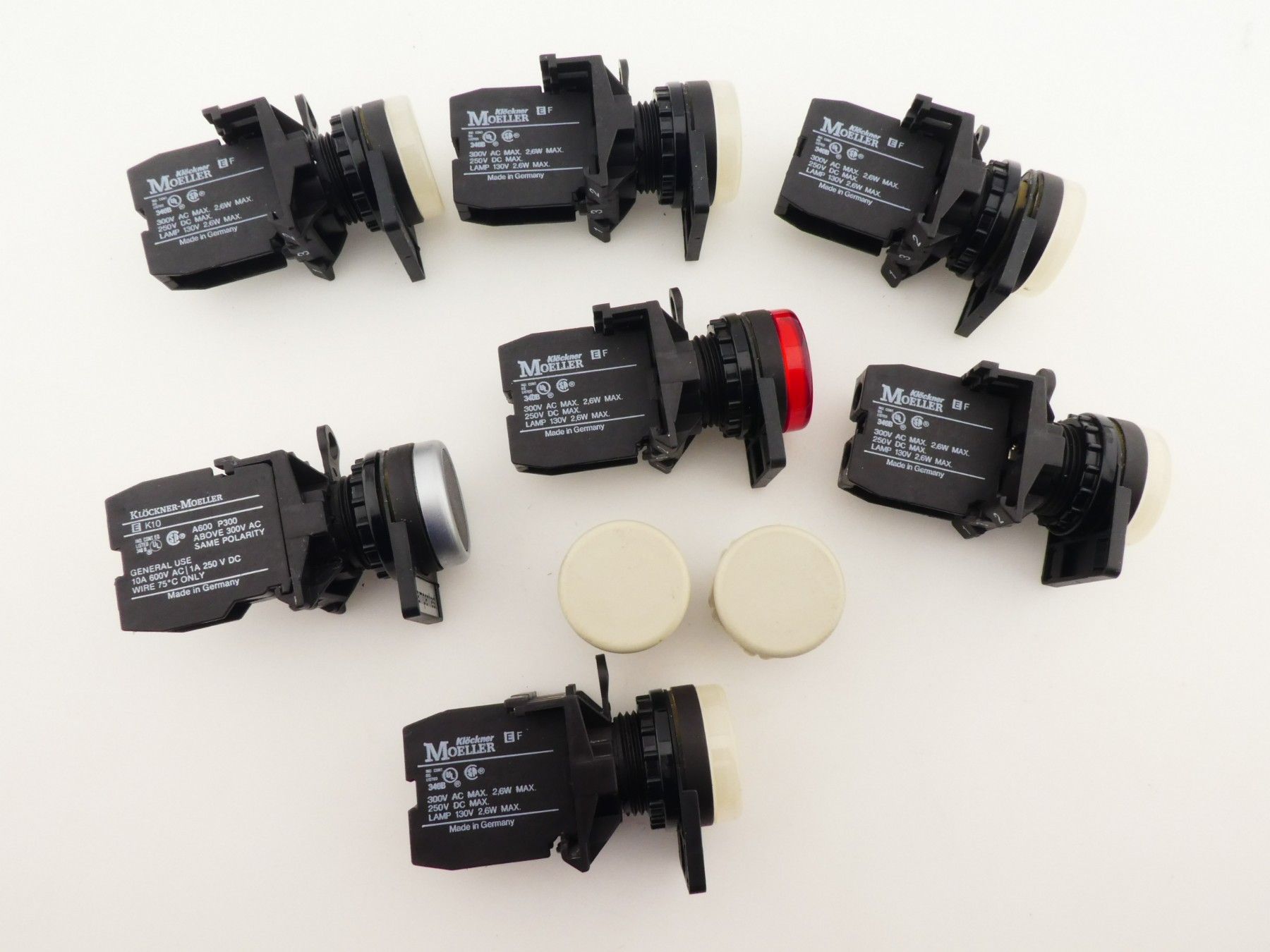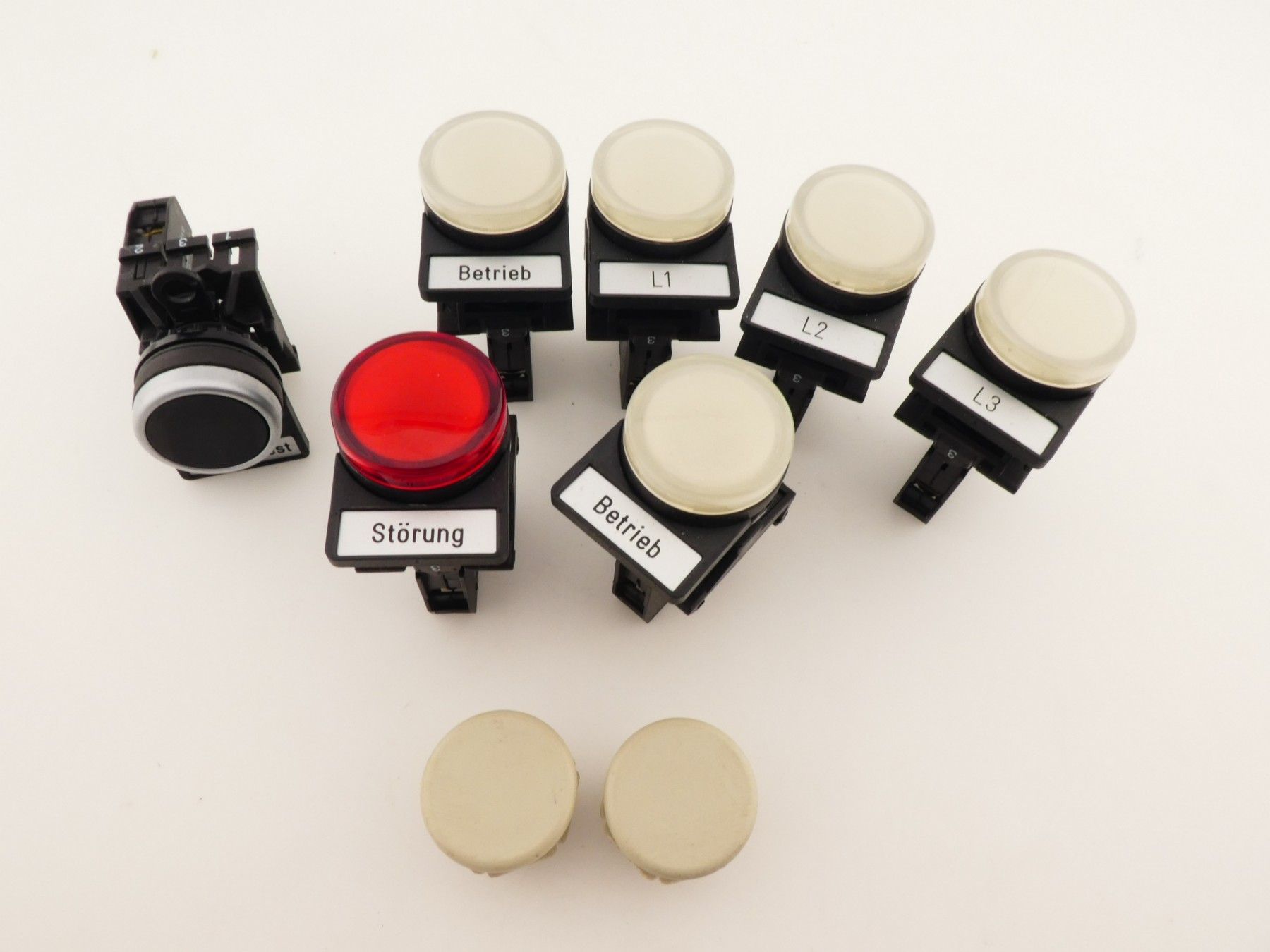 Klöckner Moeller Signalleuchten Druckknopf 5x Signalleuchte Weiß mit Lampenfassung 1x Signalleuchte Rot mit Lampenfassung 1x Druckknopf Schwarz mit E K10 1 Schließer 2x Blindstopfen
