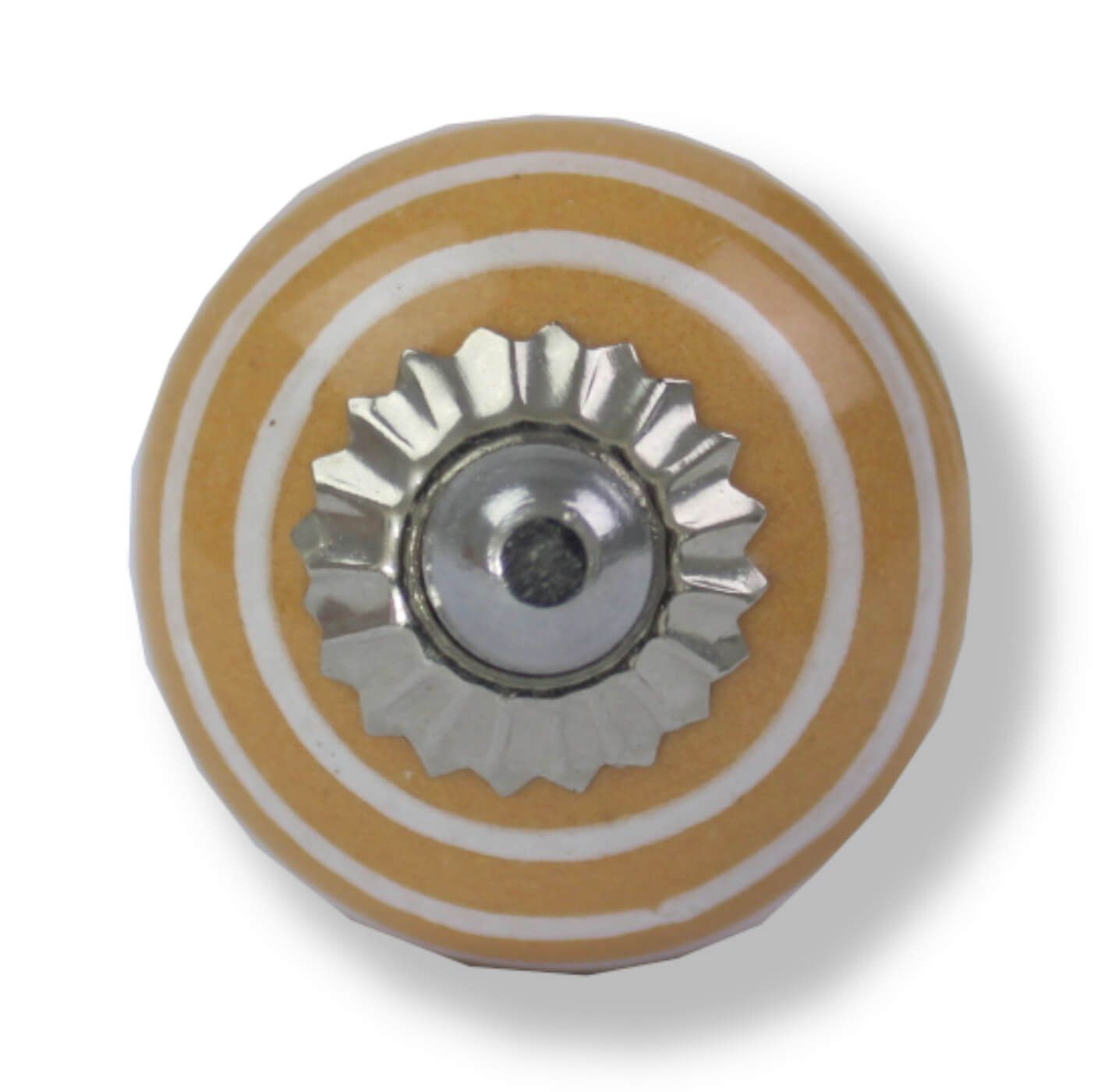 Knauf Streifen senfgelb weiß KKY03-1 Achtung Hauptartikel KKY03 Farbe weicht ab (siehe Bild!!) Streifen bringen Bewegung in den Alltag, egal ob klassisch Dunkelblau auf weißem Grund, ganz mädchenhaft in Rosa oder Sonnengelb. Unsere Streifenknäufe sind immer im Trend und garantiert nichts für Linient