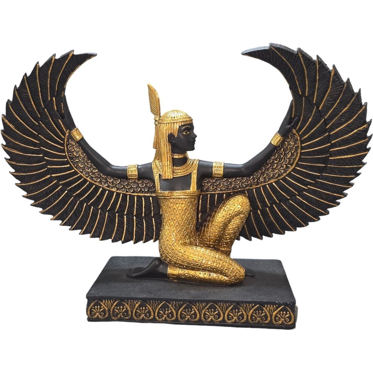 Kniende Ägyptische Göttin Maat schwarz-gold