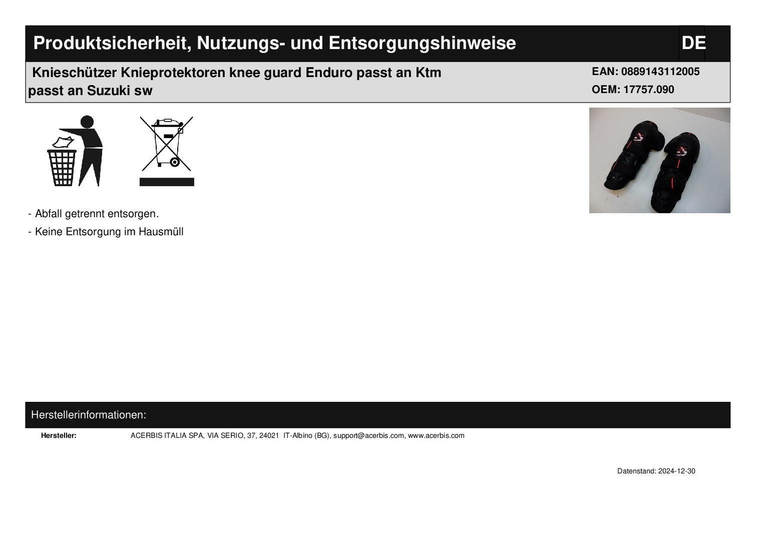 Acerbis Knieschützer Knieprotektoren knee guard Enduro passt an Ktm passt an Suzuki sw