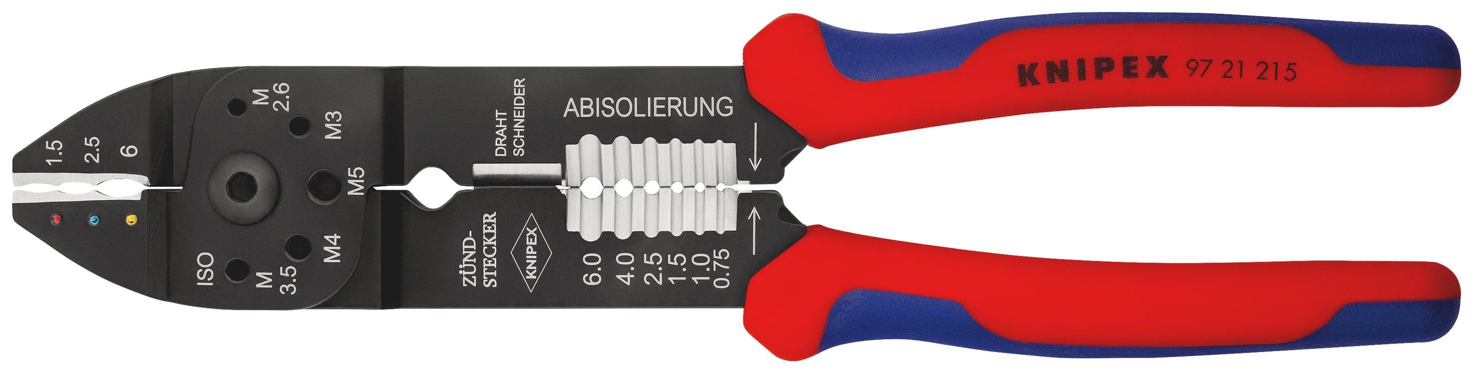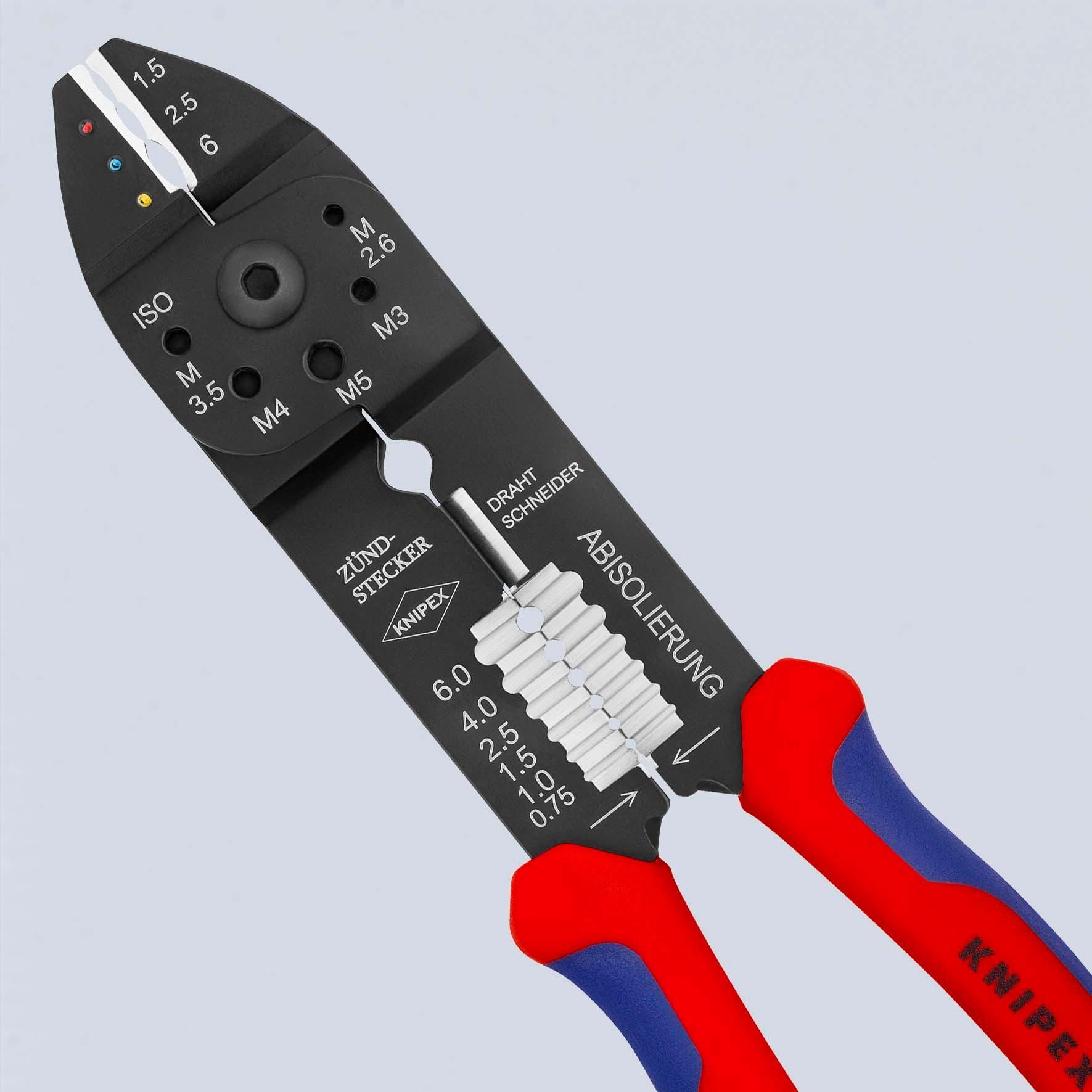 KNIPEX KNIPEX 97 21 215 Crimpzange mit Mehrkomponenten-Hüllen schwarz lackiert 230 mm