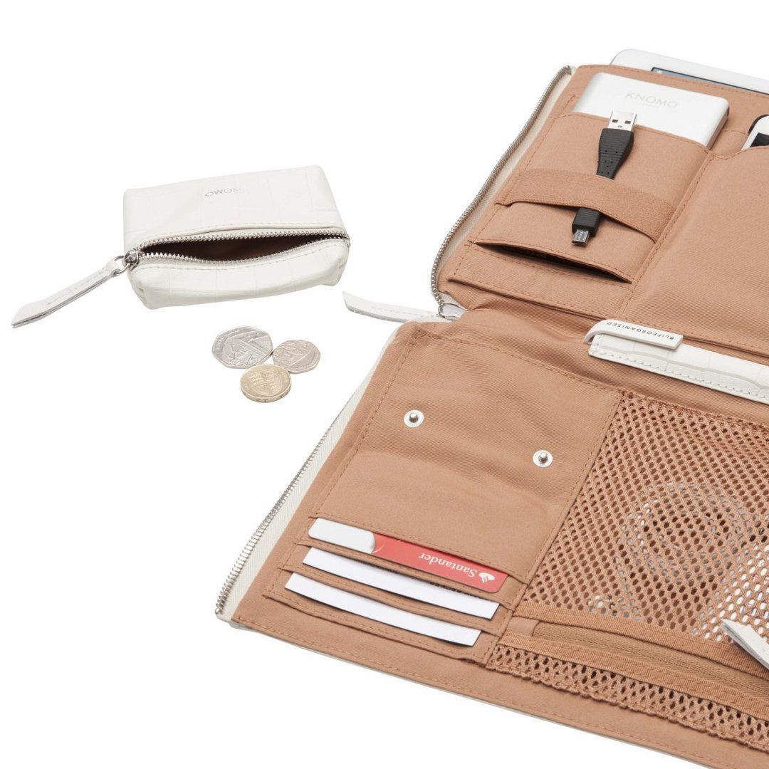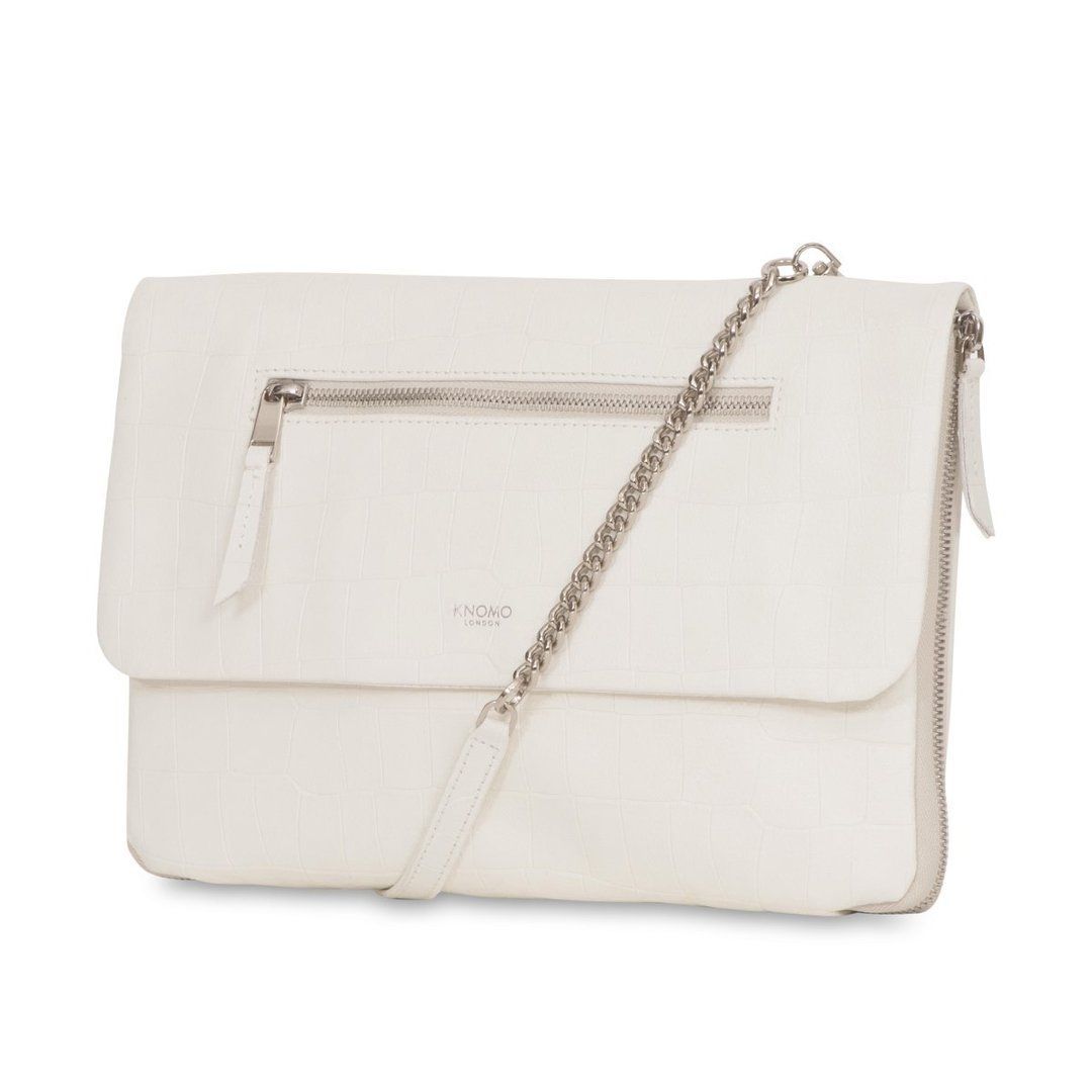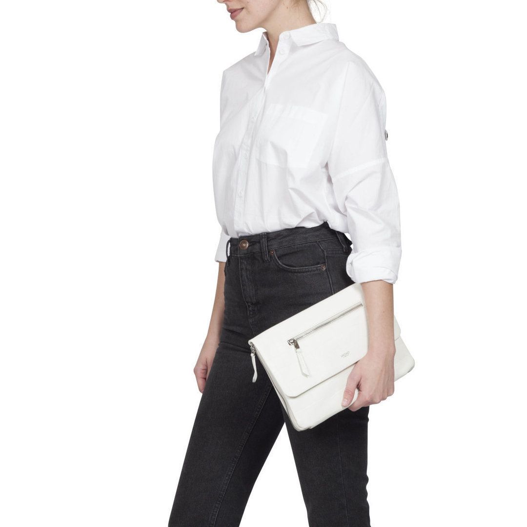 KNOMO KNOMO Elektronista Leder Clutch Crossbody Umhängetasche, edle Details Weiß