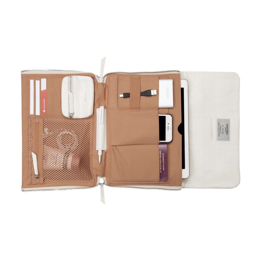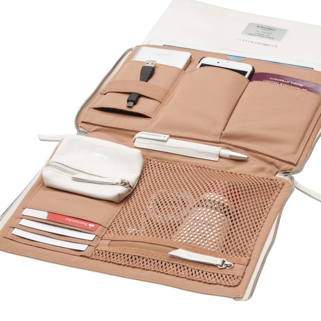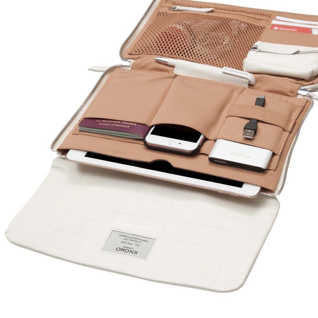 KNOMO KNOMO Elektronista Leder Clutch Crossbody Umhängetasche, edle Details Weiß