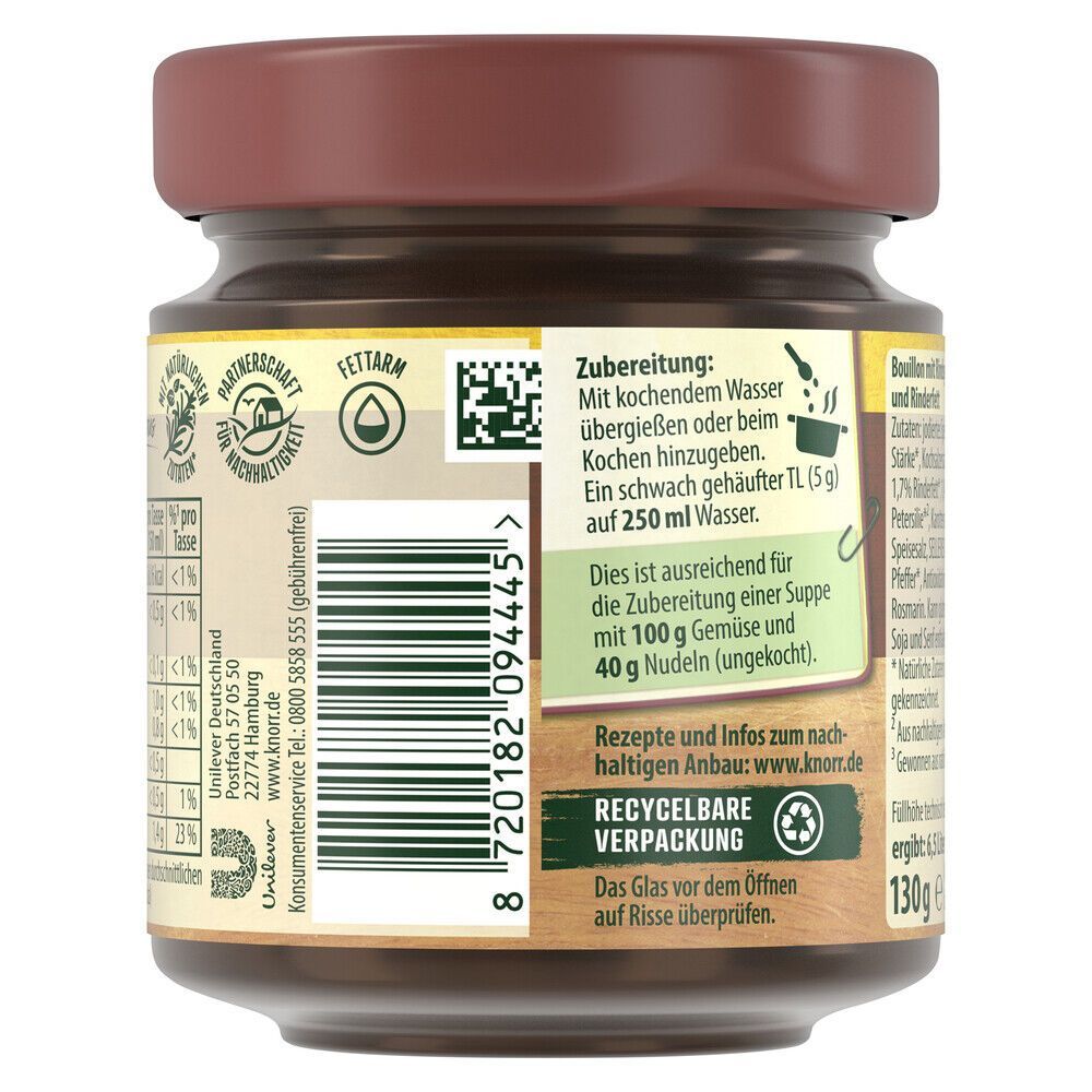 • Knorr Bouillon mit Rind im Glas ergibt 6,5L, 130 g Glas
