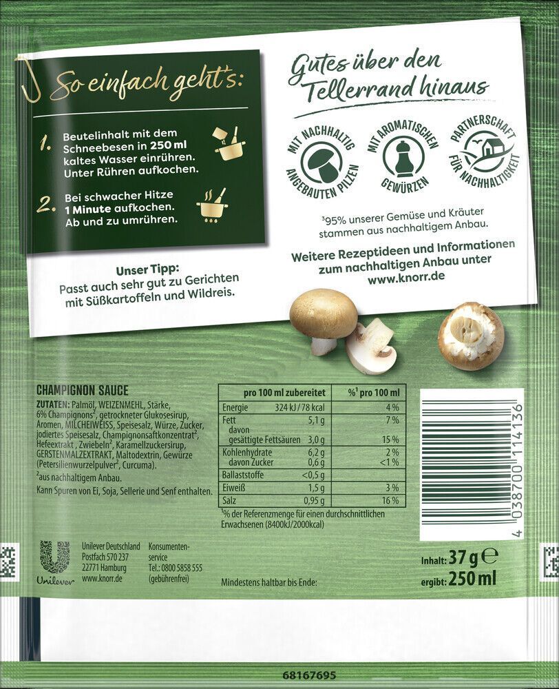 Knorr Knorr Feinschmecker Champignon Sauce 37g, 22er Pack ( 22x37g )