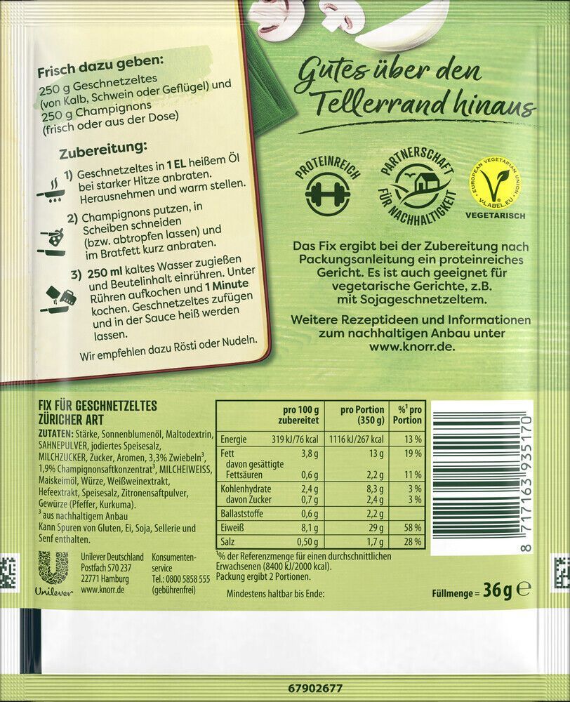 knorr Knorr Fix Geschnetzeltes Züricher Art 36 g Beutel