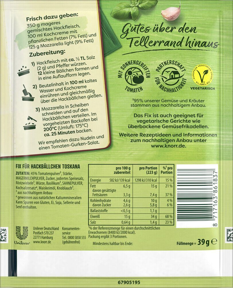Knorr Fix Hackbällchen Toskana 39g Beutel