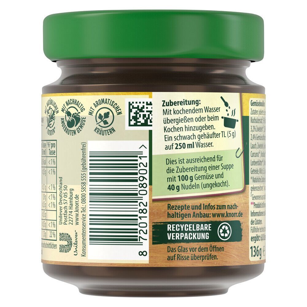knorr Knorr Gemüse Bouillon Glas ergibt 6,8 L, 136 g Glas
