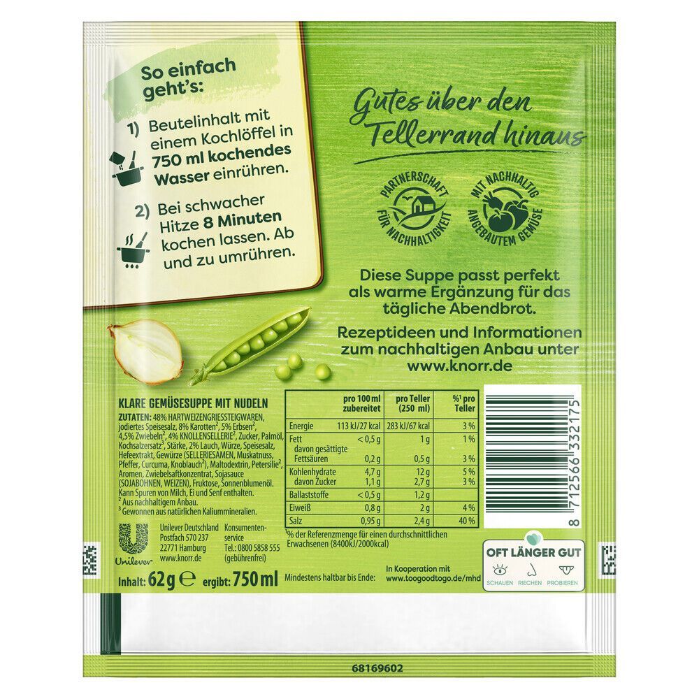 • Knorr Suppenliebe Zahlen Suppe ergibt 1 L, 84 g Beutel