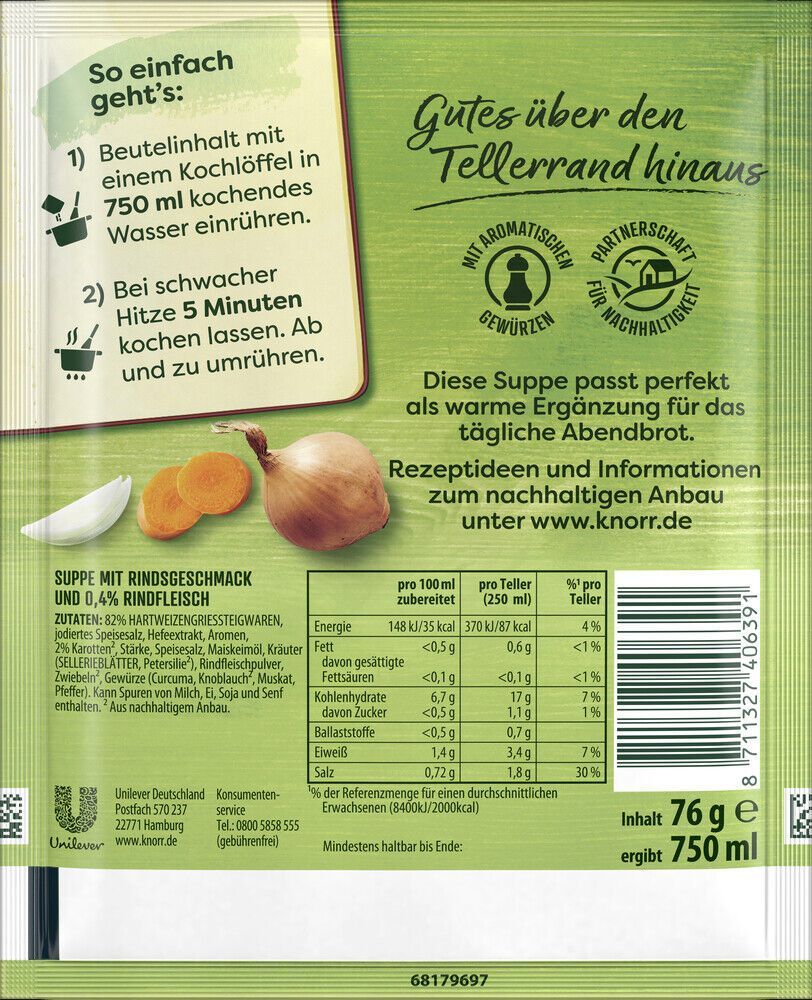 • Knorr Suppenliebe Rindfleisch Suppe 76g Beutel