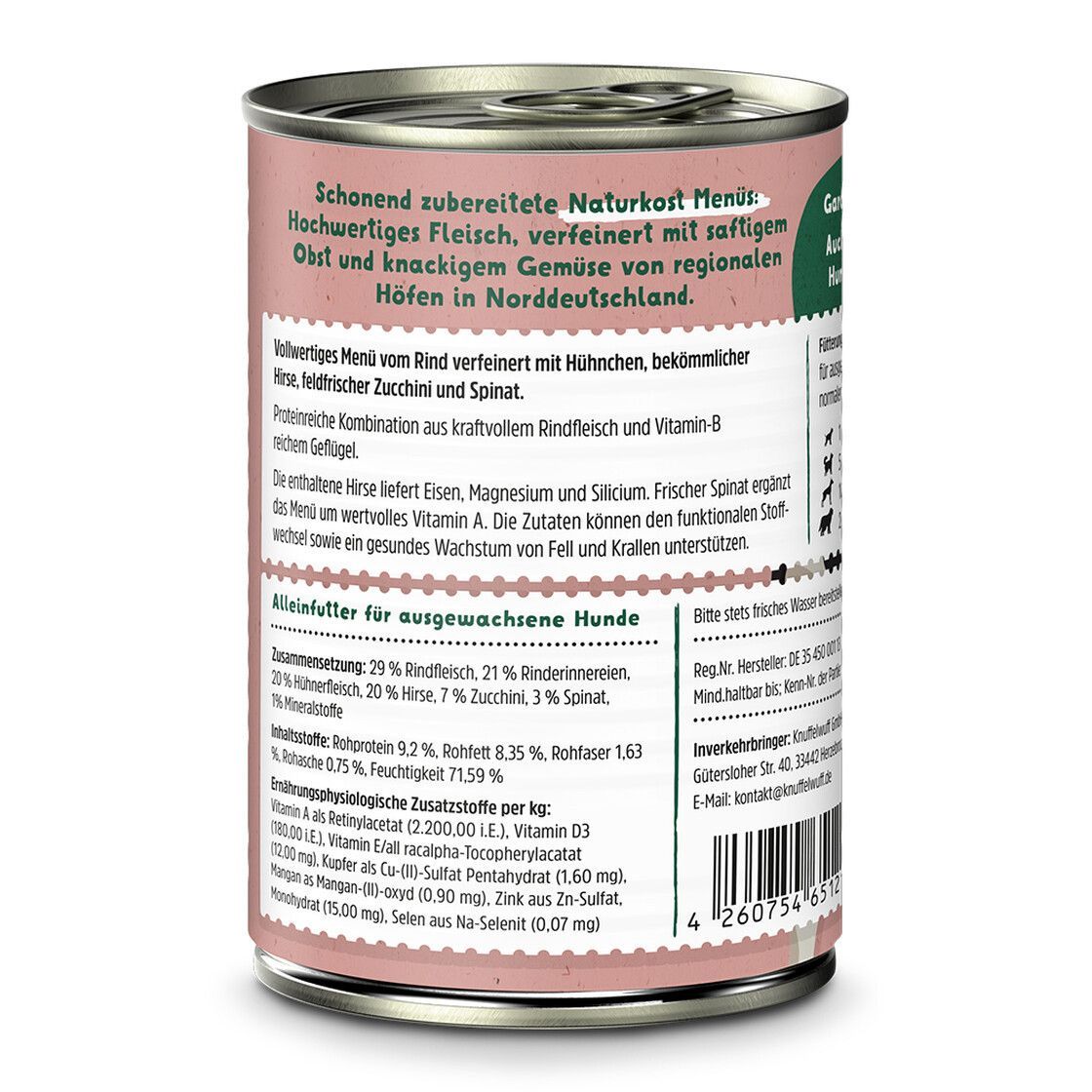 Knuffelwuff Nassfutter Rind mit feinem Hühnchen, Hirse, Zucchini & Spinat 6 Stück