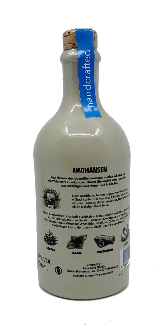 Knut Hansen Dry Gin 0,5l 42%vol. Knut Hansen Dry Gin - 0,5l 42%vol. Inverkehrbringer: Hamburg Distilling Company HDC GmbH Offakamp 9f 22529 Hamburg
