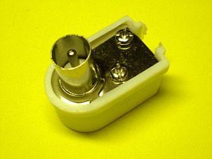 Koaxial Winkelstecke r Mit Schraubanschlu ss für max. 9,5mm Antennenkabe l - geschraubte Kabelz ugentlastun g - weisses Kunststo ffgehäuse +++ NEUWARE +++
