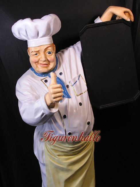 Koch Werbefigur Straßenaufsteller Deko Tafel Restaurant Werbung lebensgroß Figur