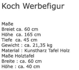 Koch Werbefigur Straßenaufsteller Deko Tafel Restaurant Werbung lebensgroß Figur Tafe