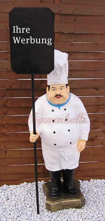 Koch Werbefigur Tressen Werbeaufsteller mit Angebotstafel Menütafel Kochmütze Restaur