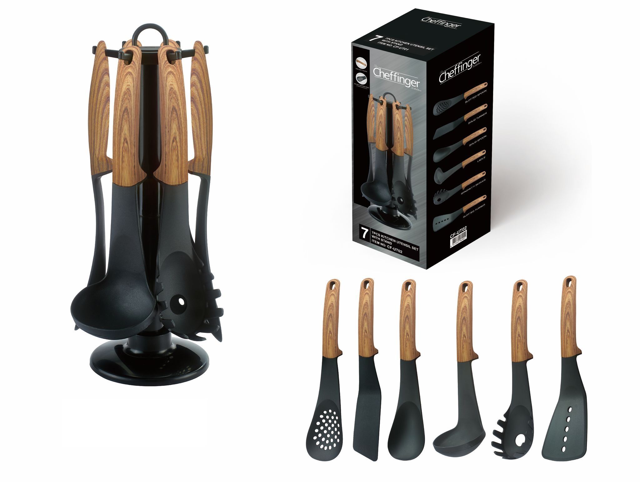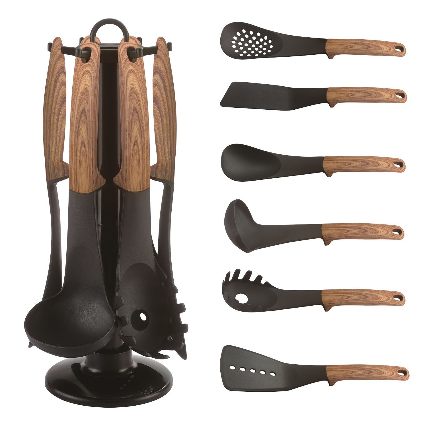 Kochbesteck Küchenhelfer Set 7-teilig, Holzoptik