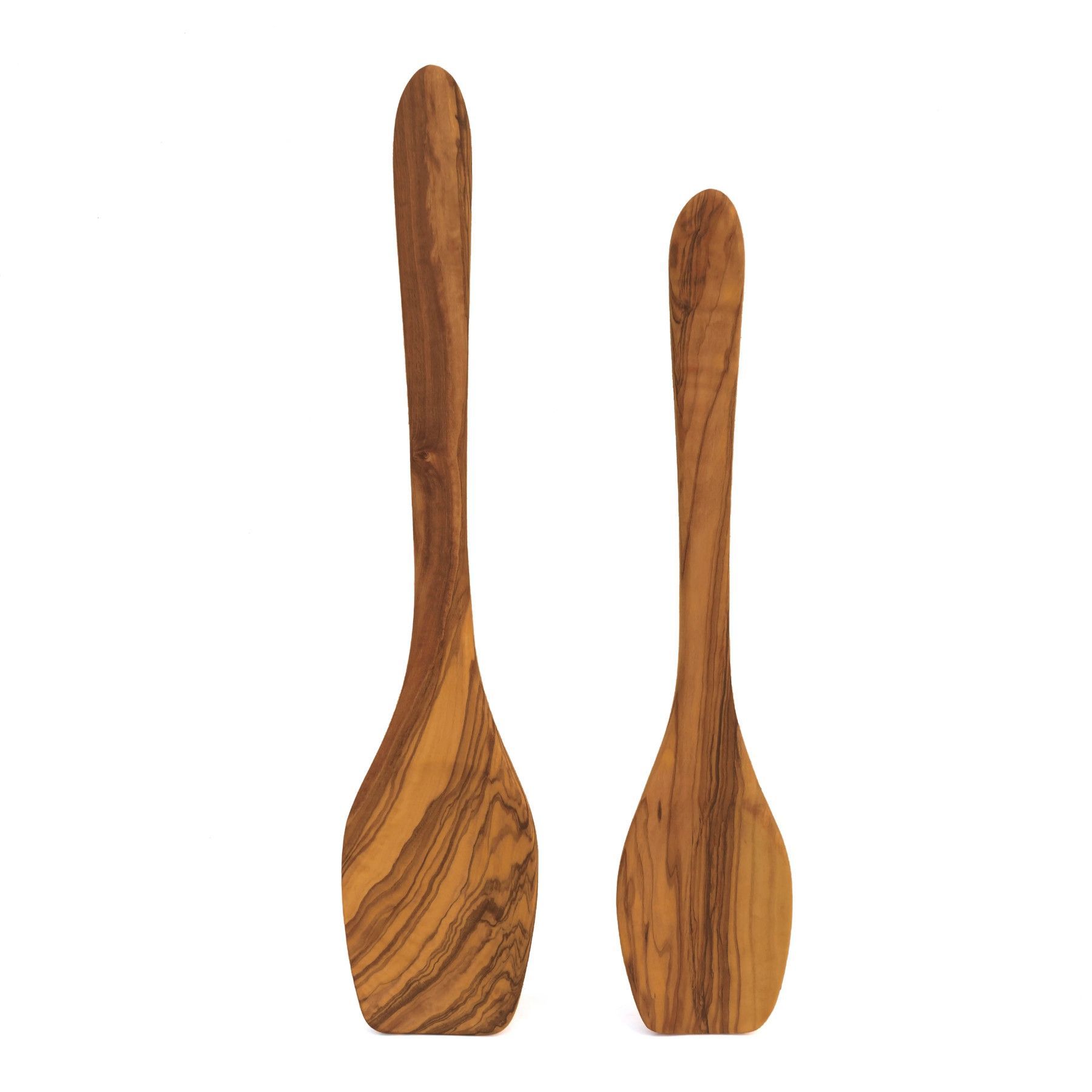 Kochlöffel/ Wender breiter Griff flach Länge wählbar 30/35 cm, Löffel, aus Olivenholz