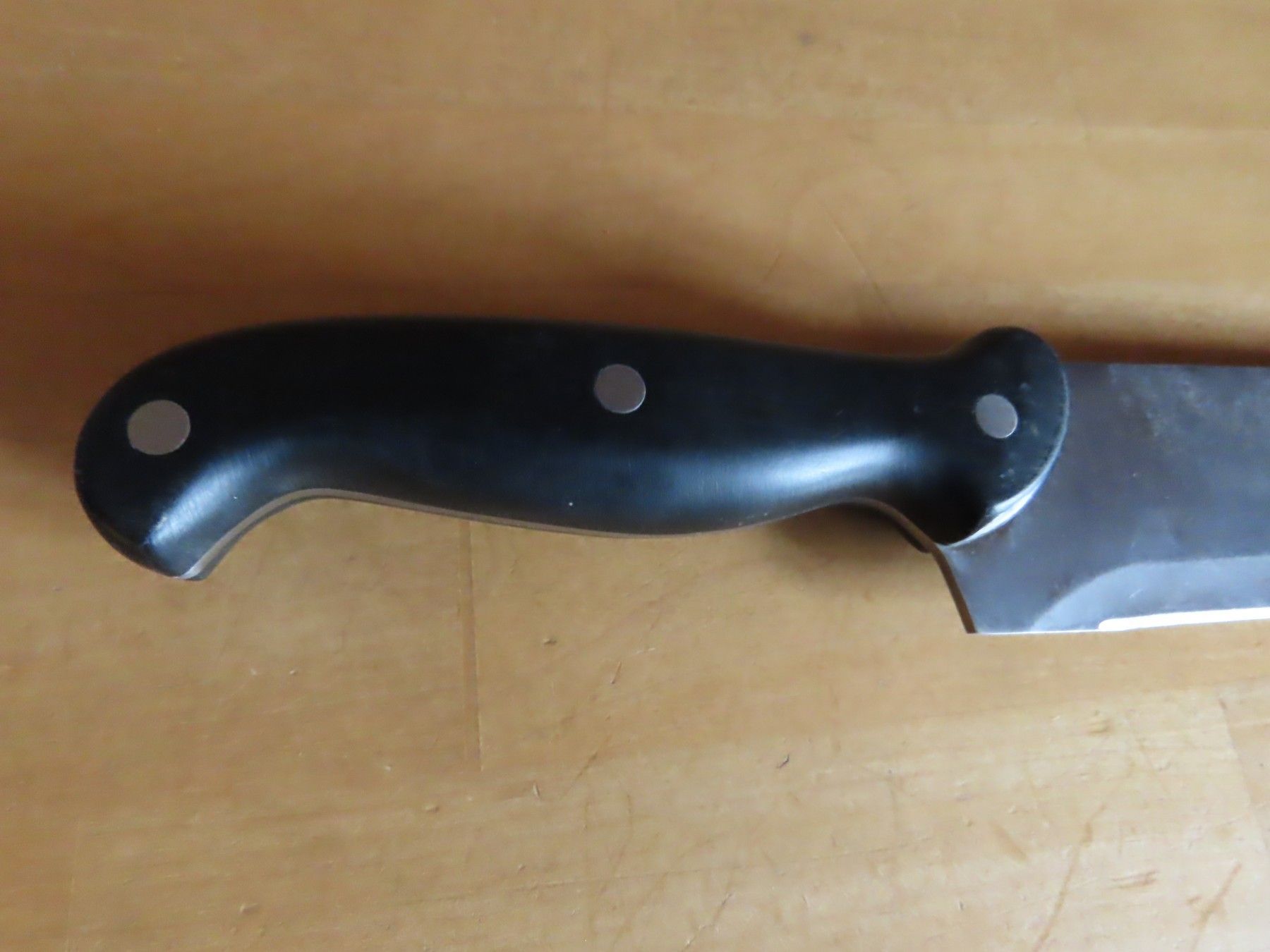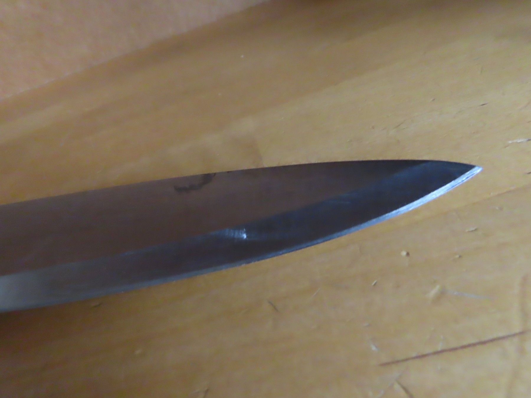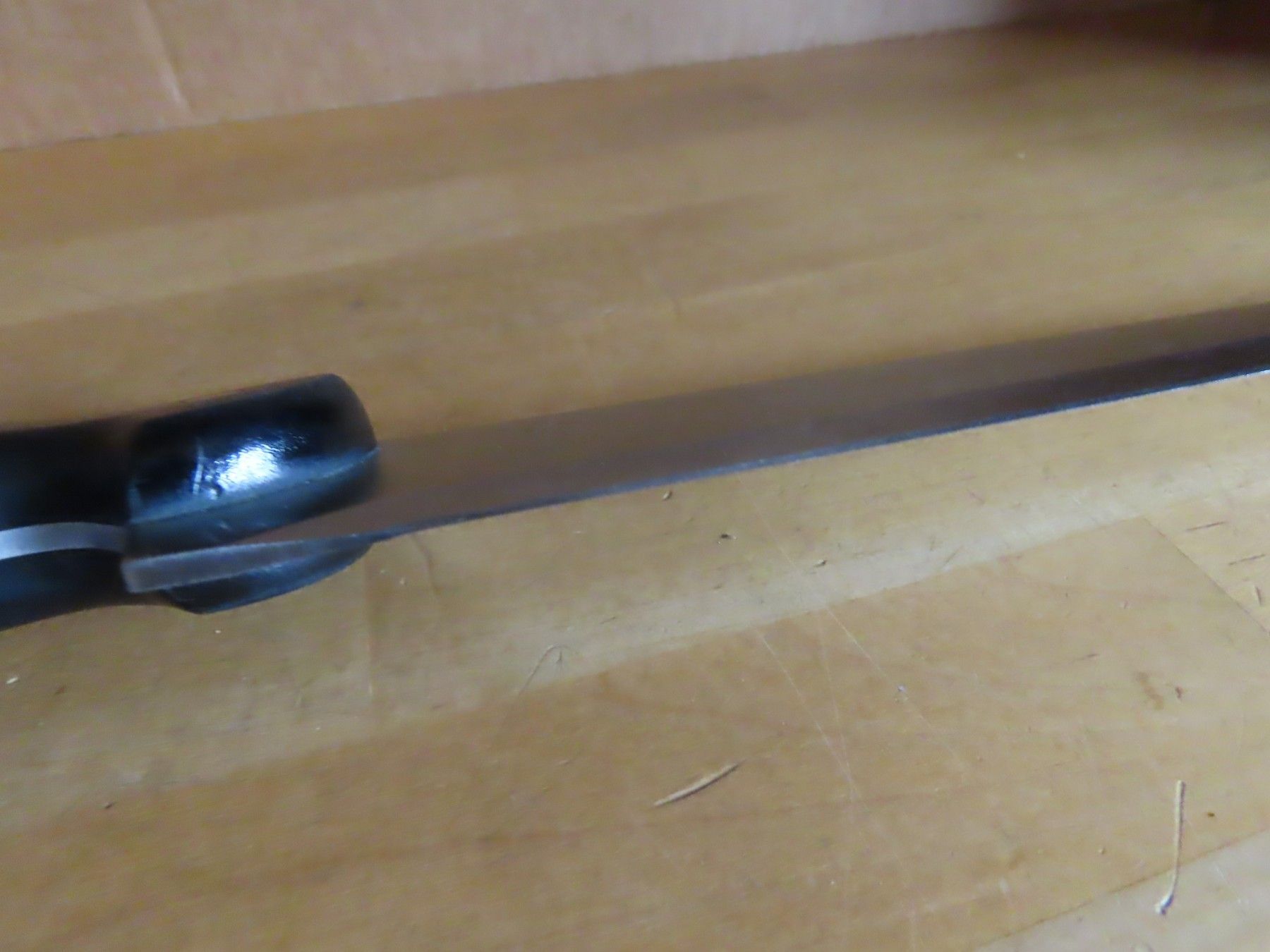 Maße ca. 35,9 cm lang x ca. 4,5 cm breit--immer die breiteste Stelle gemessen Schnittlänge ca. 23 cm lang und ca. 4,5 cm breit Messerrücken ca. 3mm Material: Metall magnetisch ist leicht verschmutzt verstaubt, hat feine Kratzer wie scharf das Messer ist habe ich NICHT getestet
