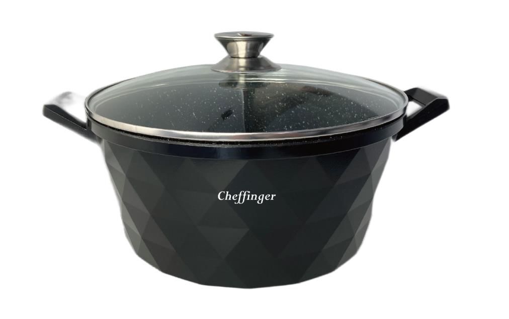 Kochtopf Alu Guss Glasdeckel Ø32cm Induktion Marmorbeschichtung Suppentopf Pfanne