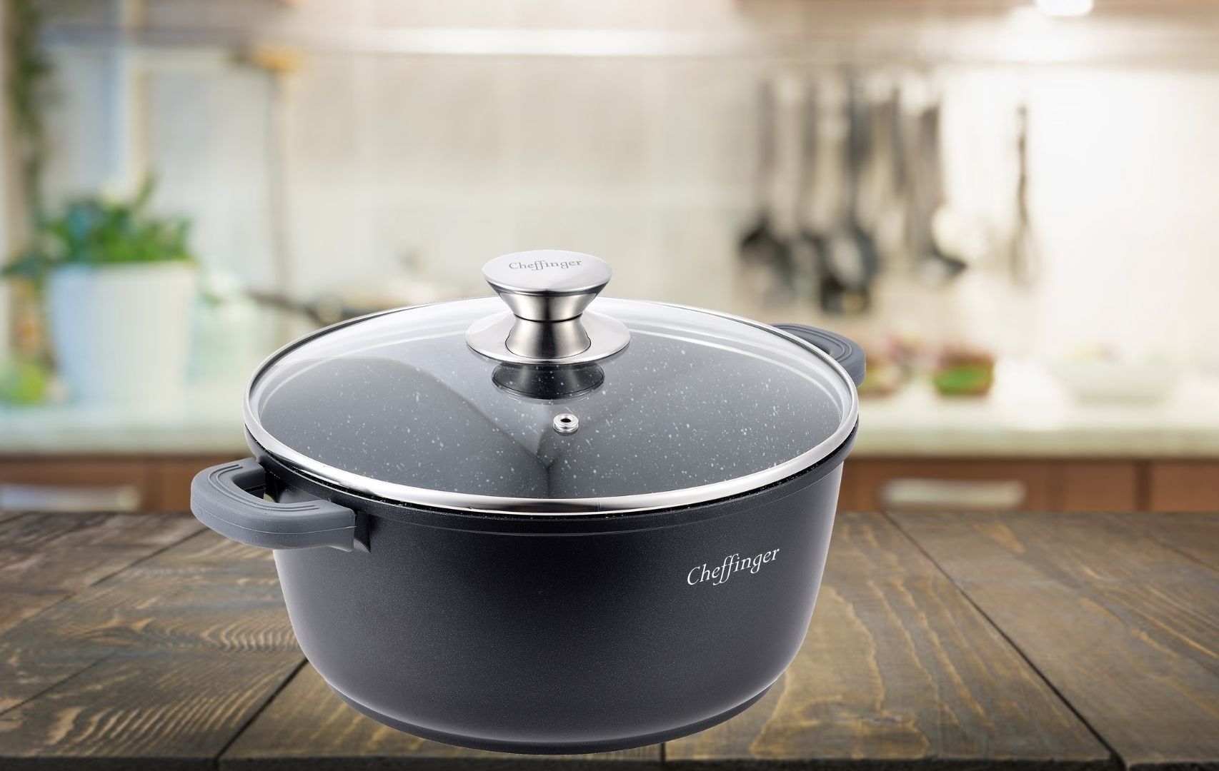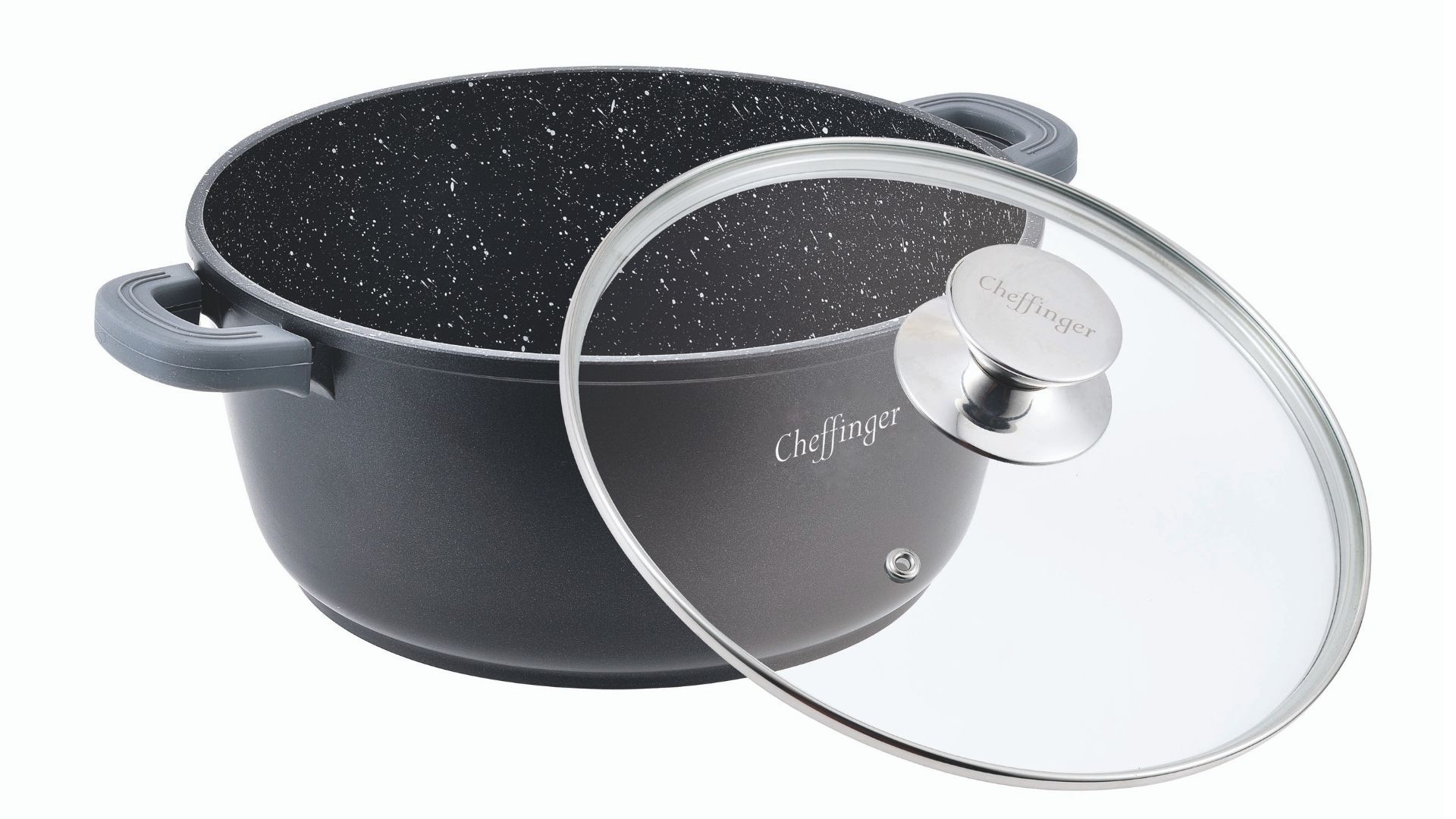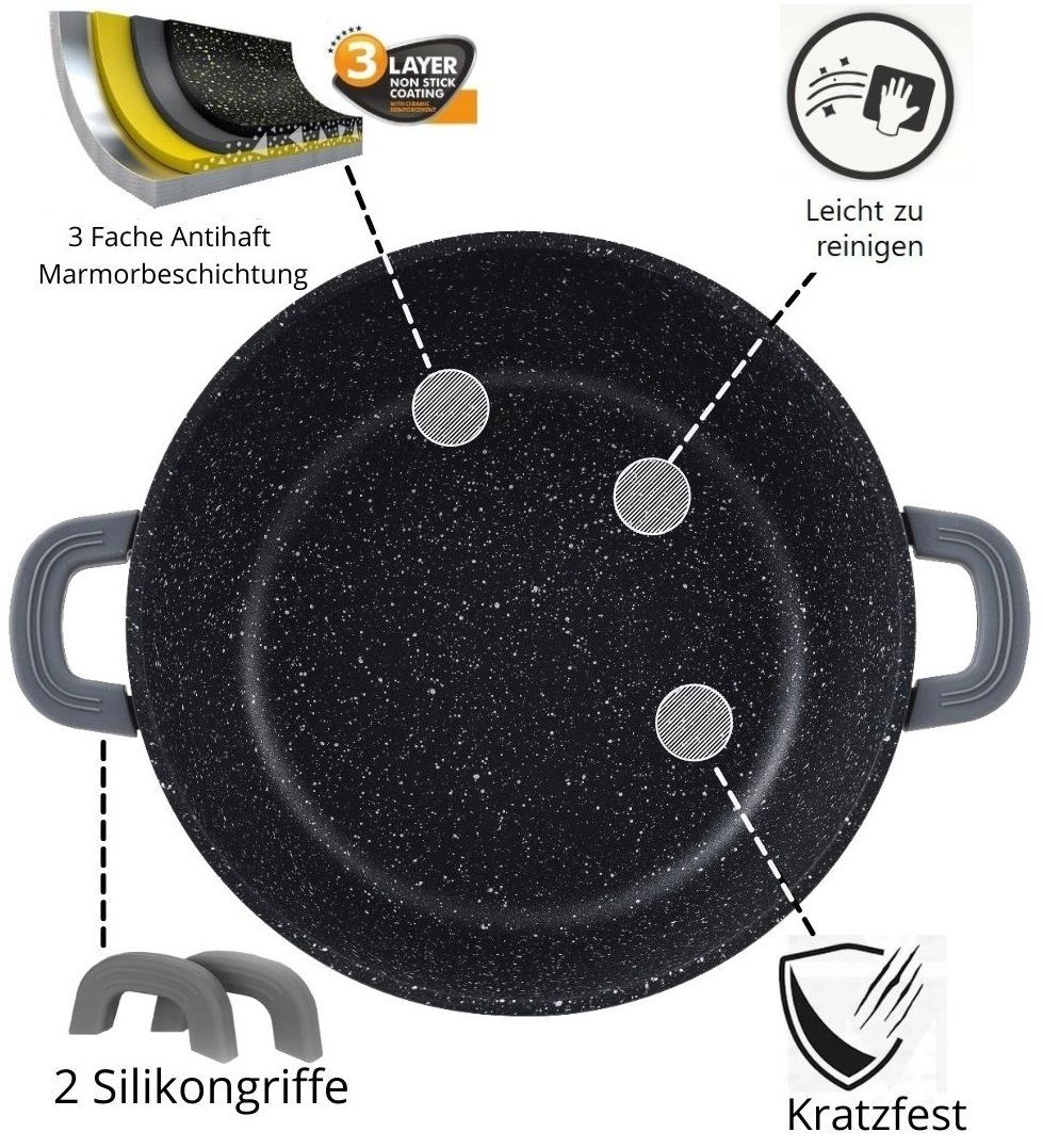 Kochtopf Aluguss Glasdeckel Ø24cm Induktion Marmorbeschichtung Suppentopf Pfanne